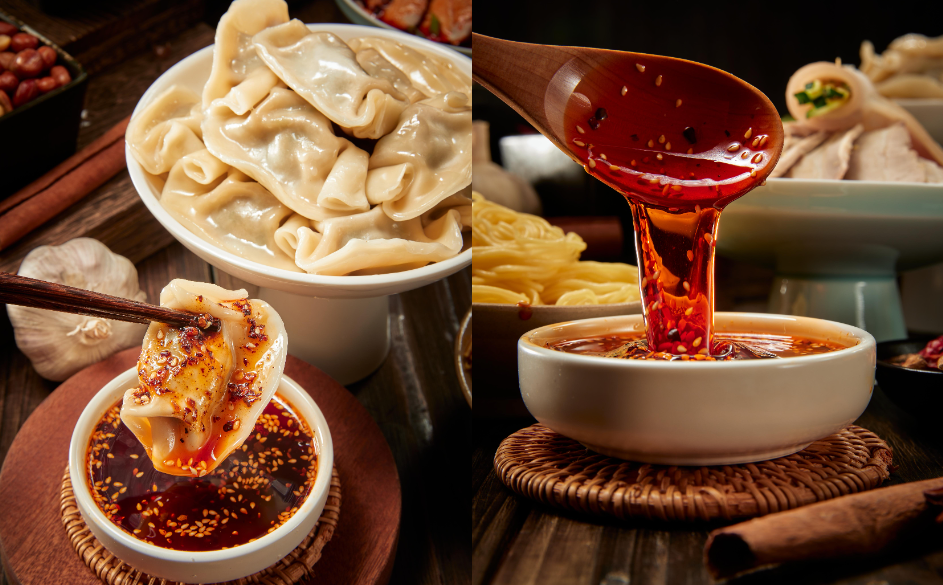 饺子调个蘸水,饺子的原香与红油的辣香,任君随意选择,两者交融,饺子的灵魂一窜而出,整个人都变得生龙活虎。