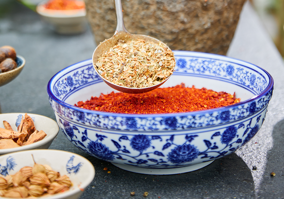 混合后的5种辣椒面和32味香辛料粉