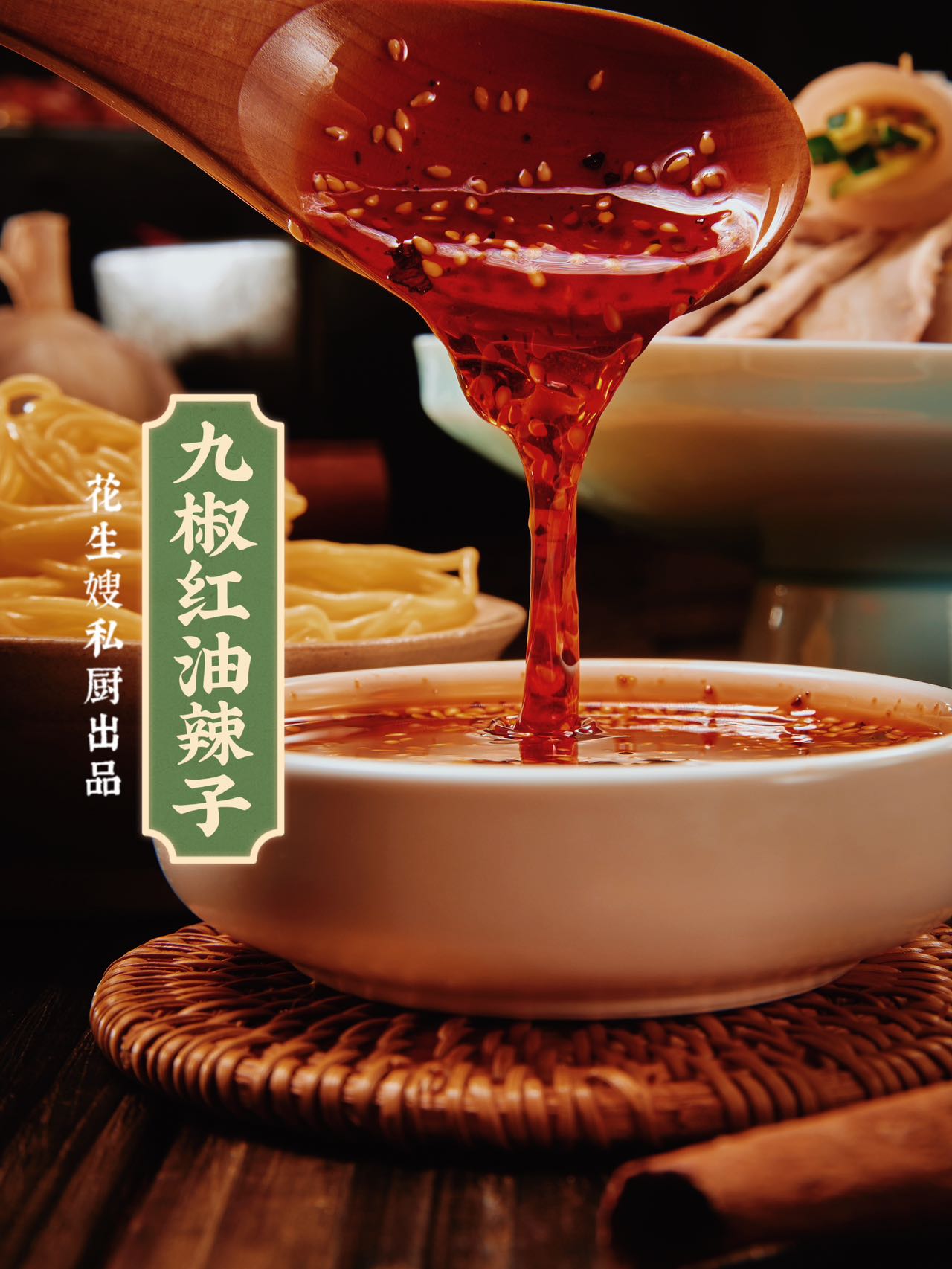 轻轻松松提升饭菜的颜值和口味,超强的美食诱惑,厨艺爱好者的私房秘密,尽在一罐九椒红油辣子中。