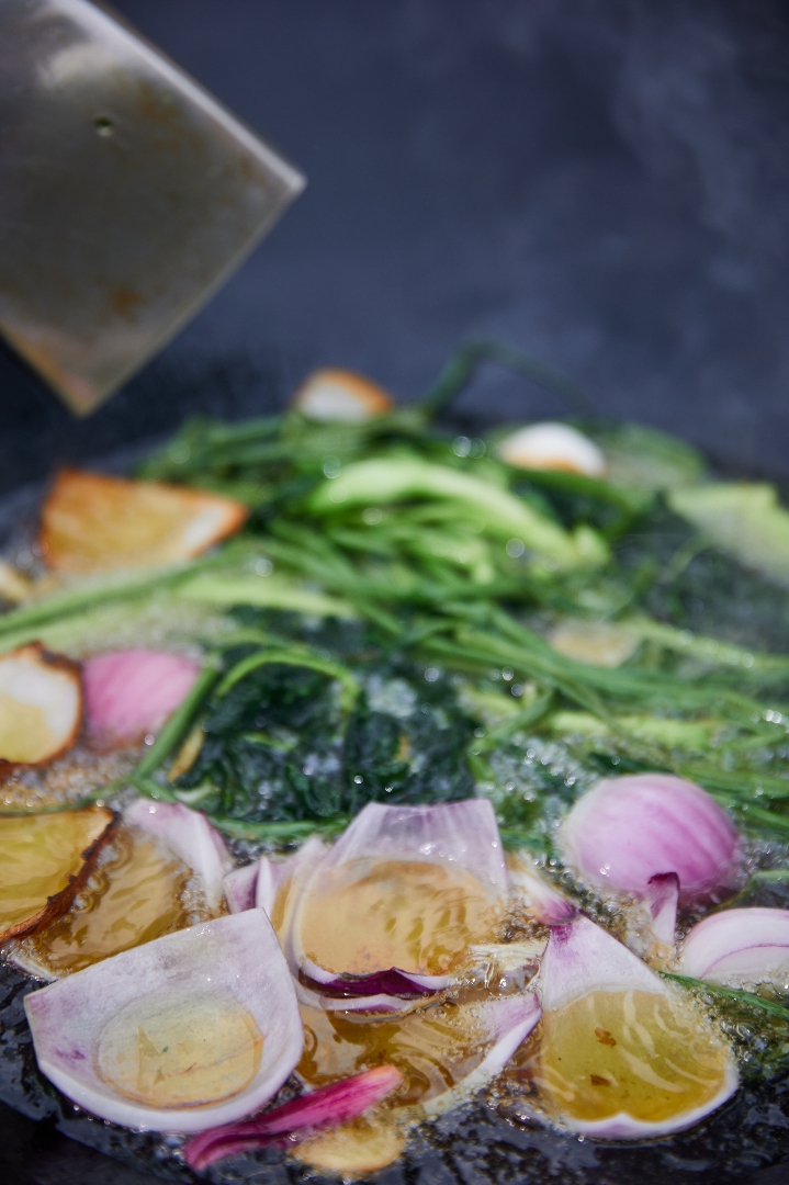 热油淋入的一瞬间,油温的起伏甚是壮观