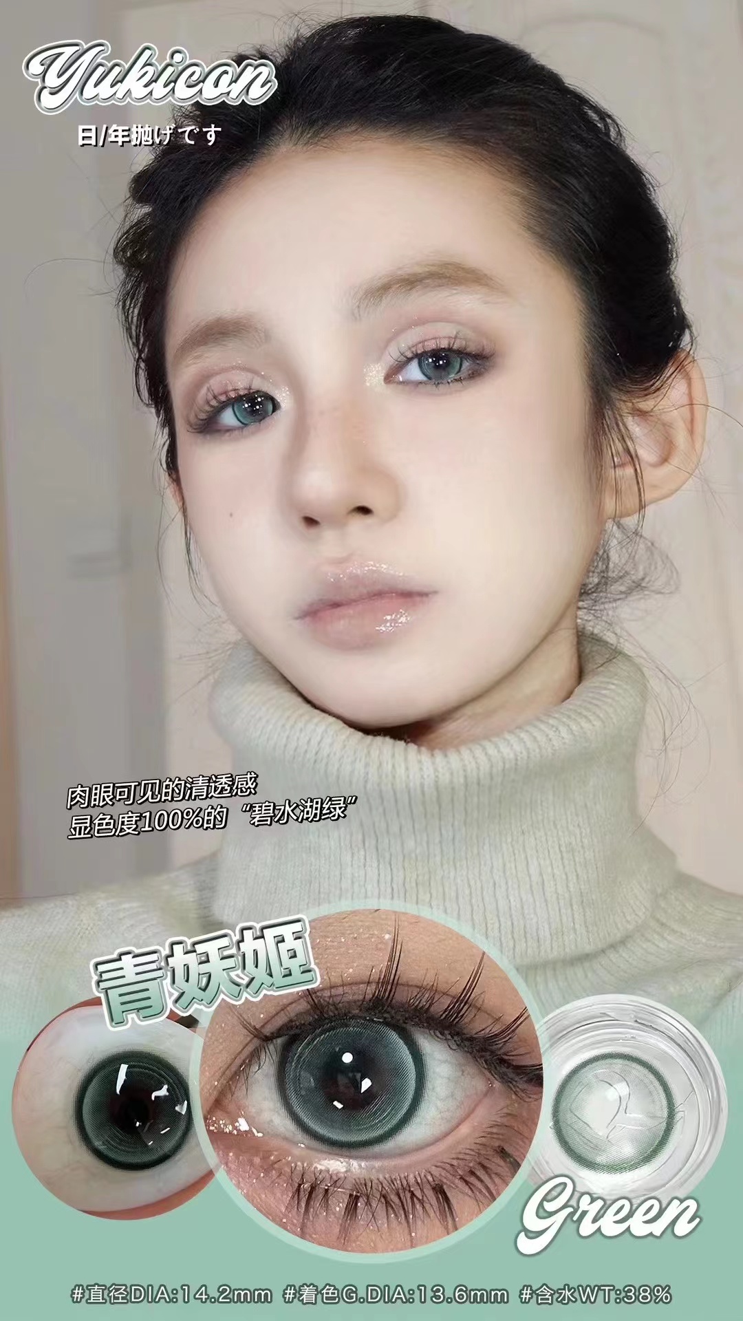 yukicon 青妖姬/灰幼灵 年抛 直径14.2 着色13.6 含水38%