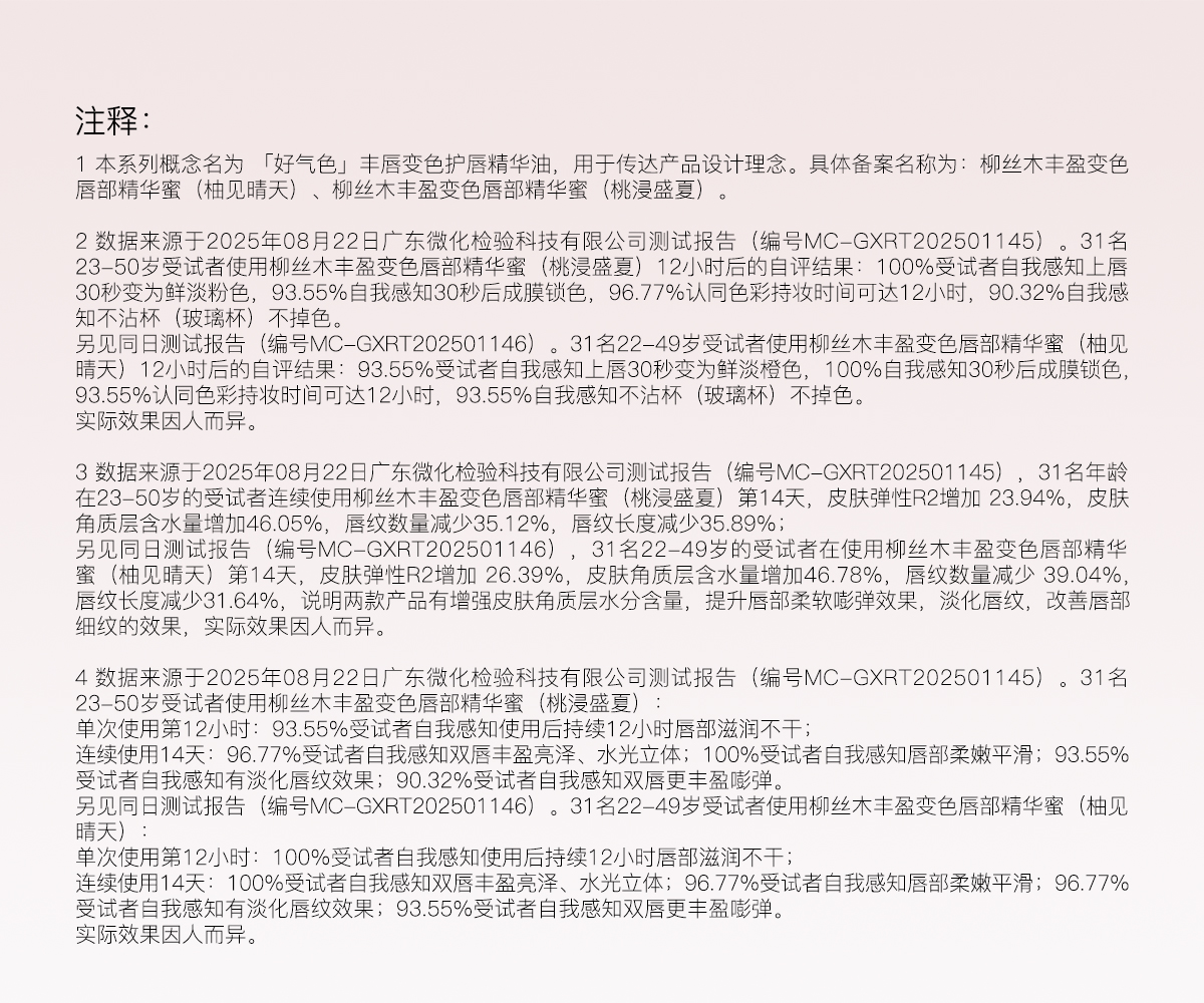 柳丝木变色唇部精华清新果香深润保湿12h持妆淡纹打底
