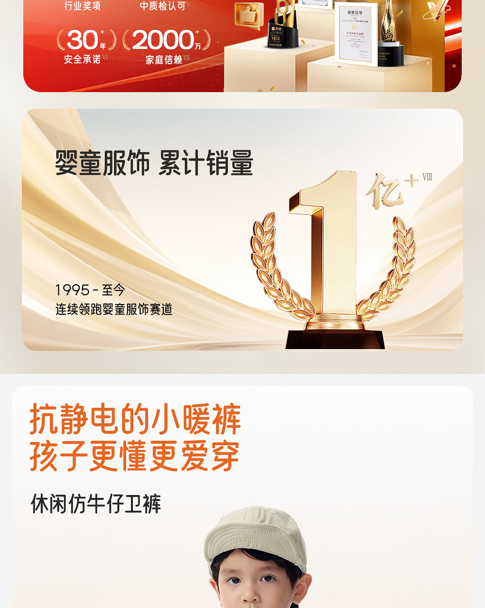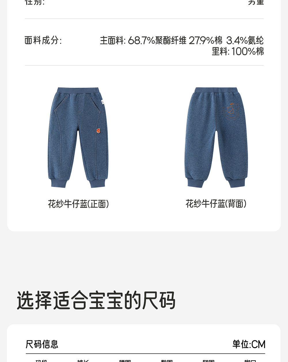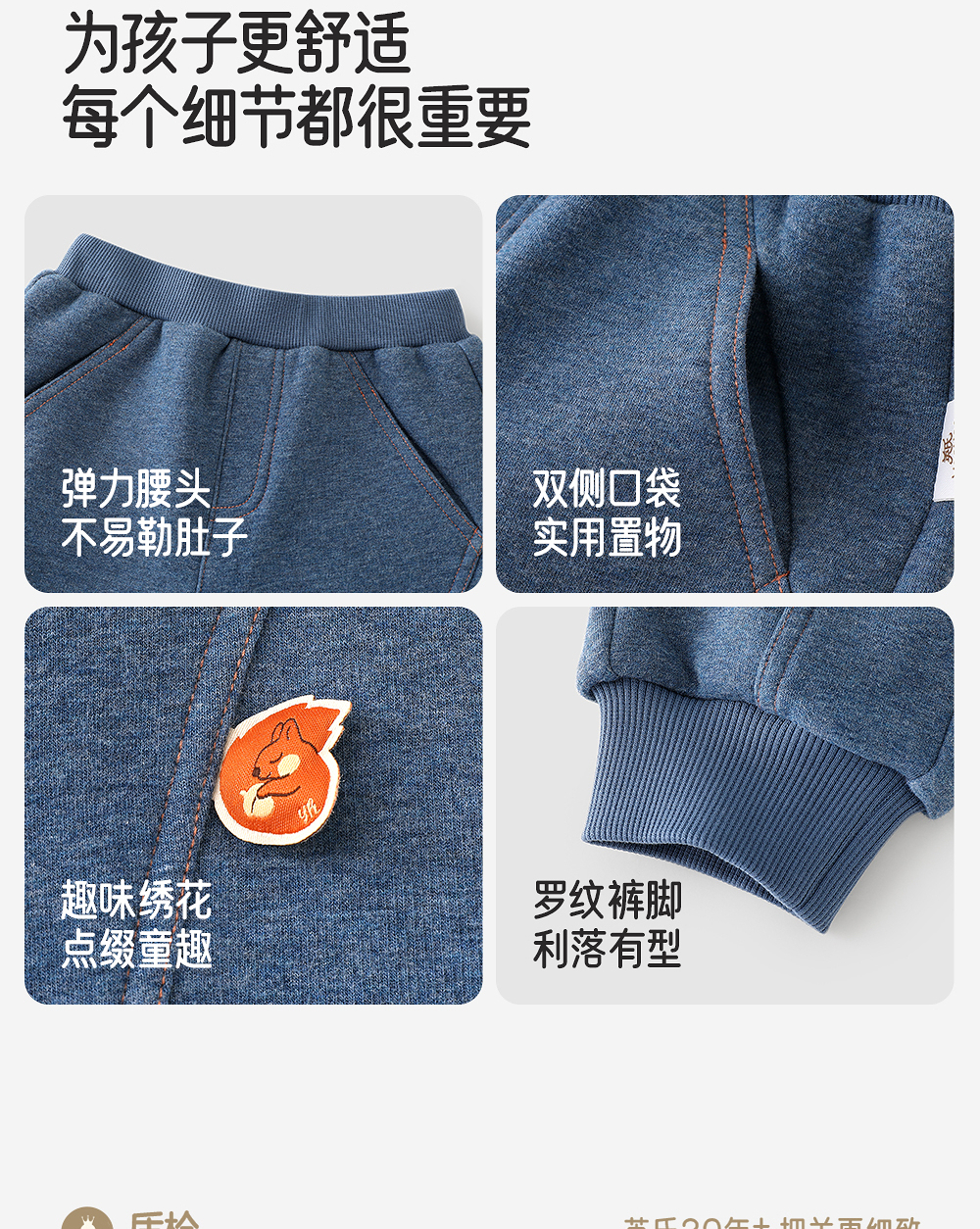 英氏儿童长裤男童秋冬束脚裤舒适保暖休闲新款裤子YRKCJ4R031A