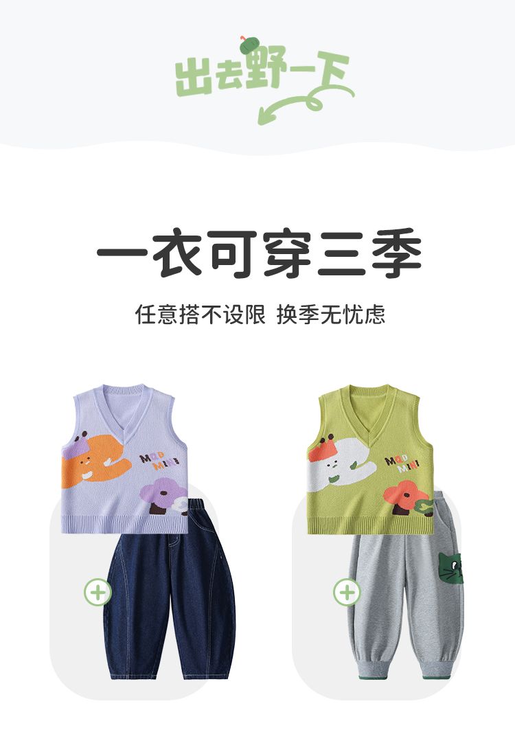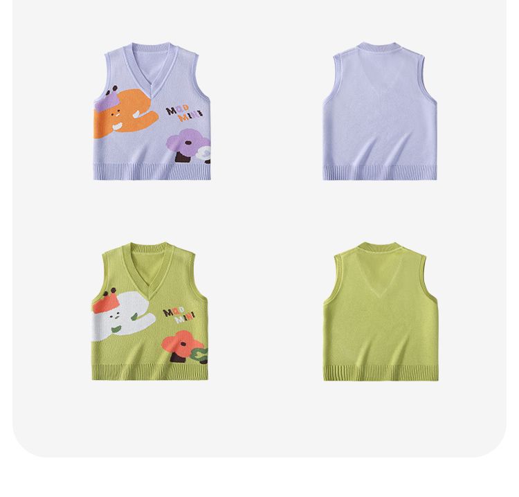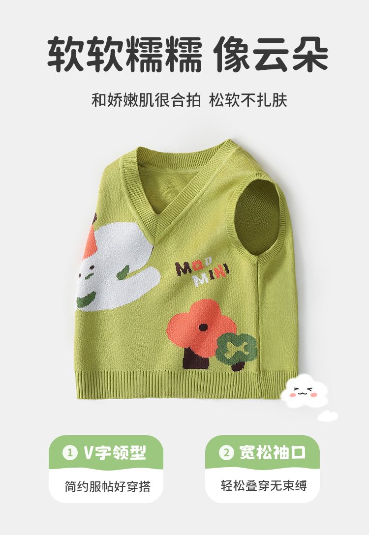 【男女同款】【90-140】【MQDmini】男女童春秋毛衫儿童坎肩V领上衣