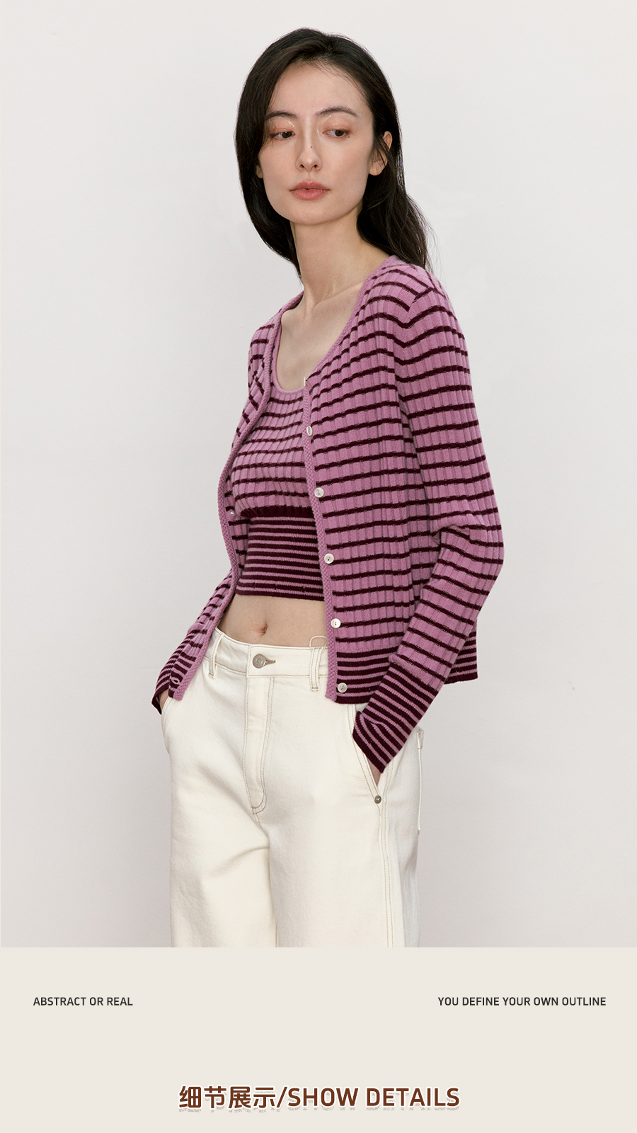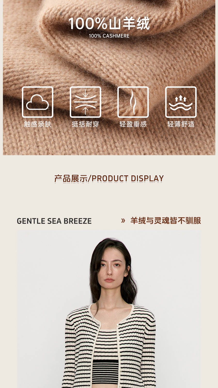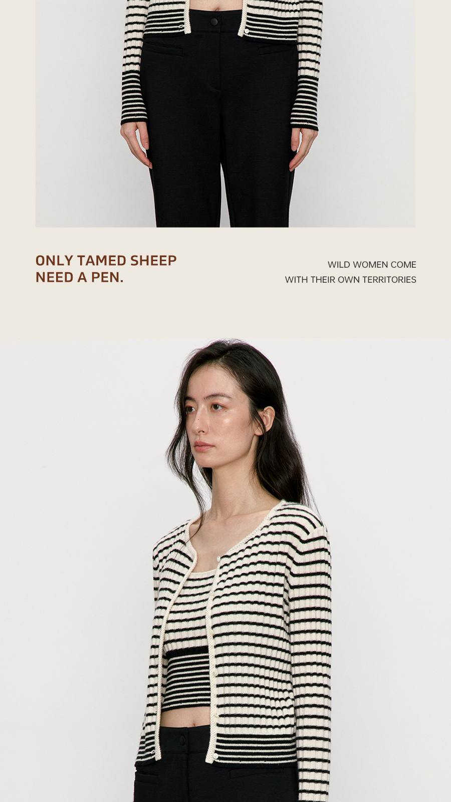 东黎 • 我不被驯化 新序条纹 山羊绒女士秋季打道开衫 5372