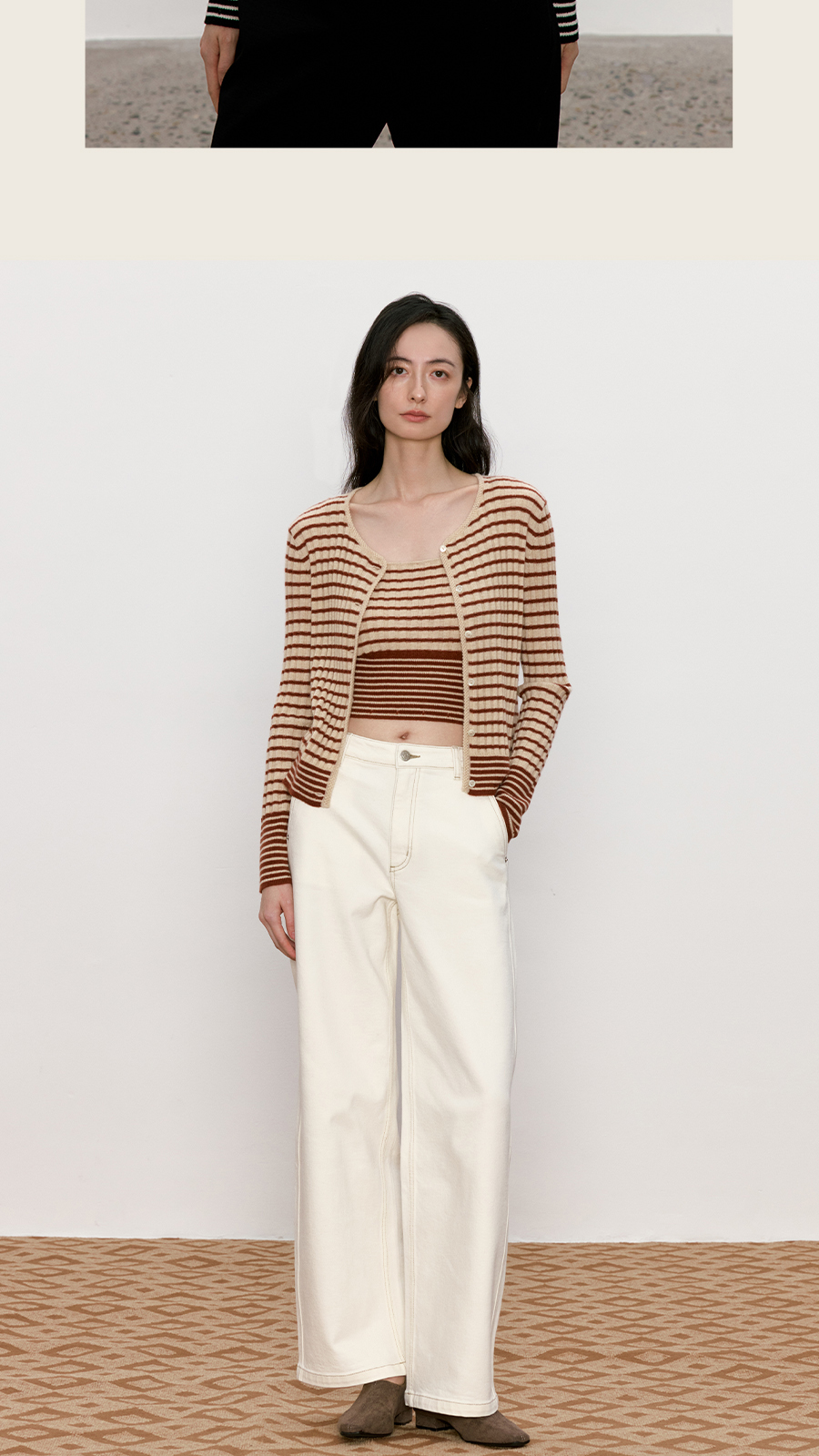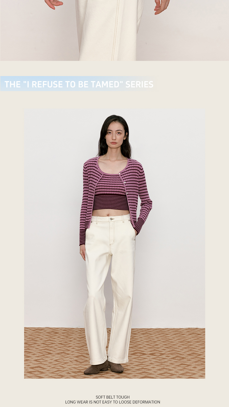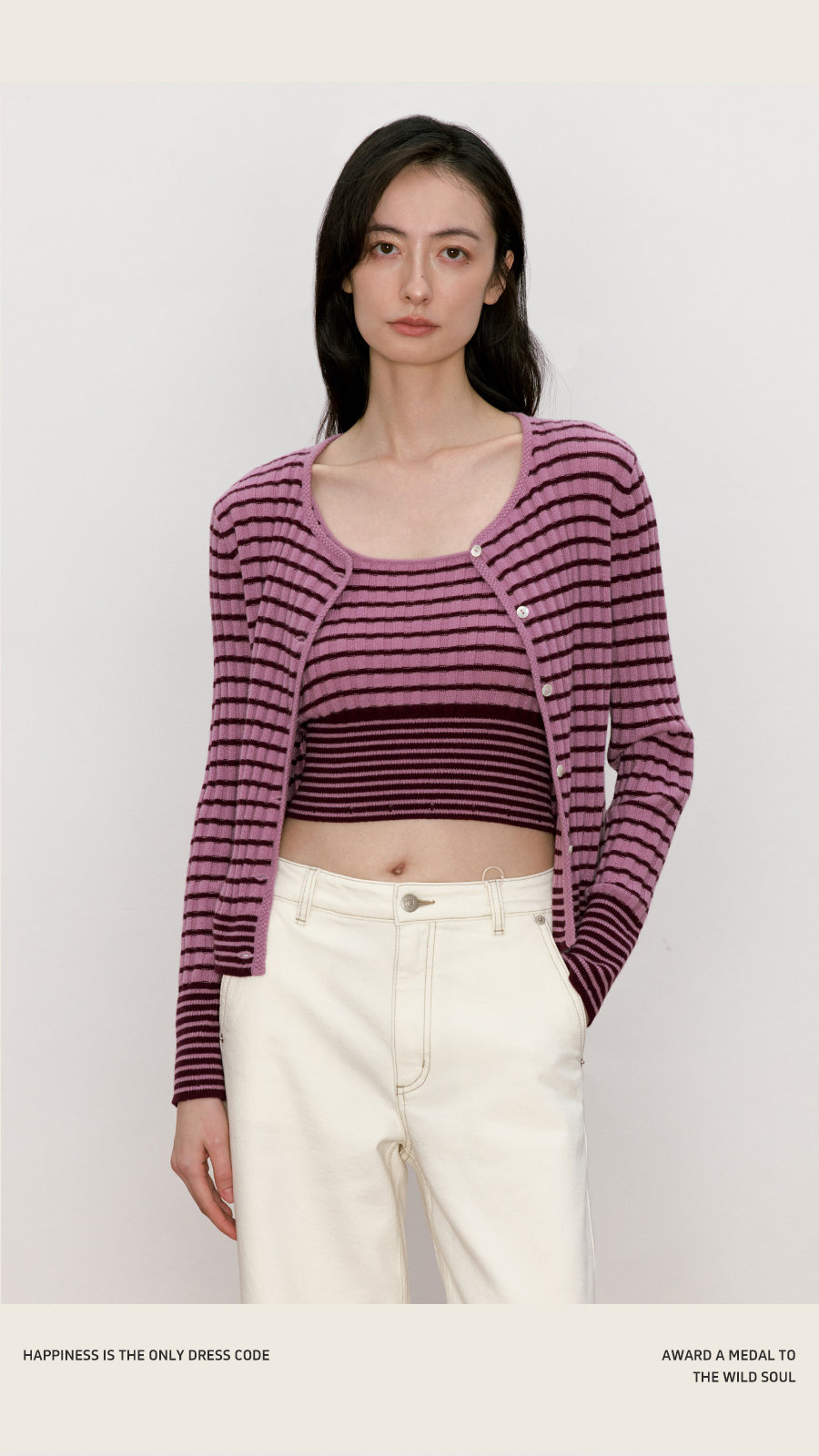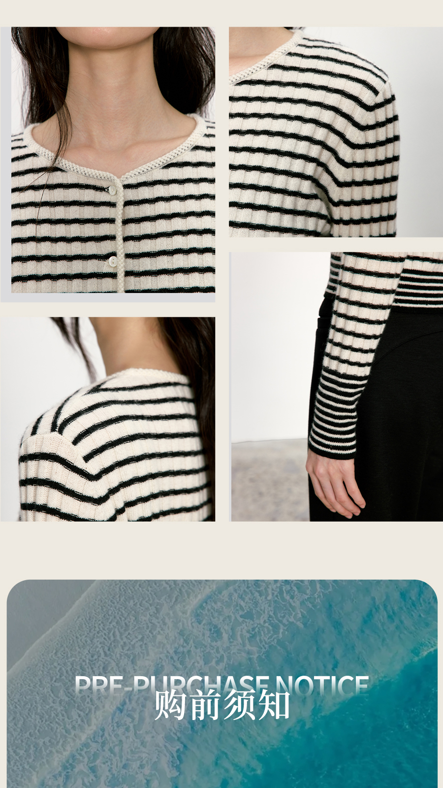 东黎 • 我不被驯化 新序条纹 山羊绒女士秋季打道开衫 5372