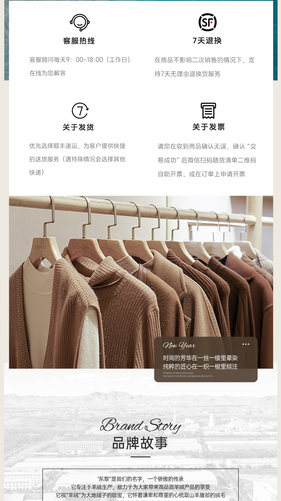 东黎羊绒是赤峰东荣集团自主品牌,自有牧场/羊绒制品全产业链优势,实现了羊绒从“牧场”到“商场”的华丽转变。
