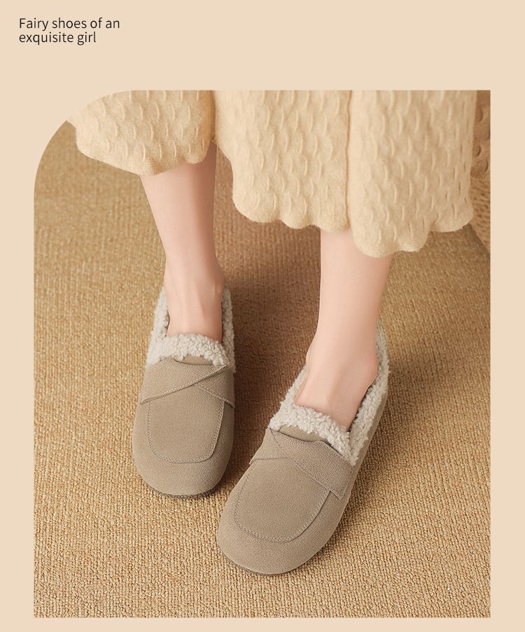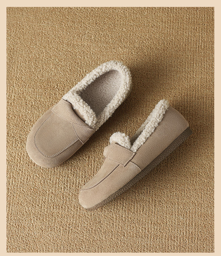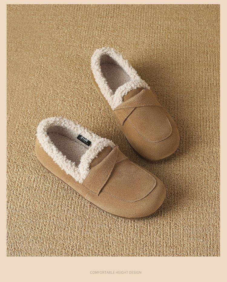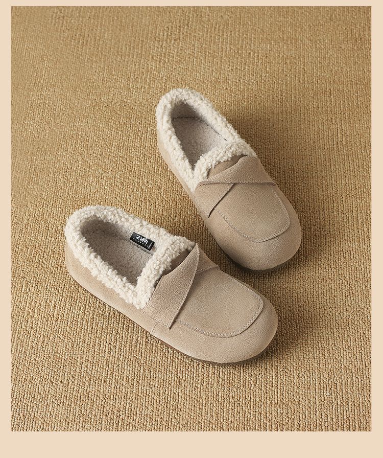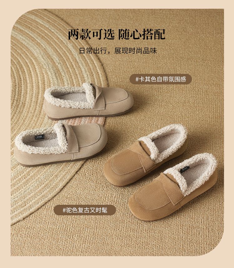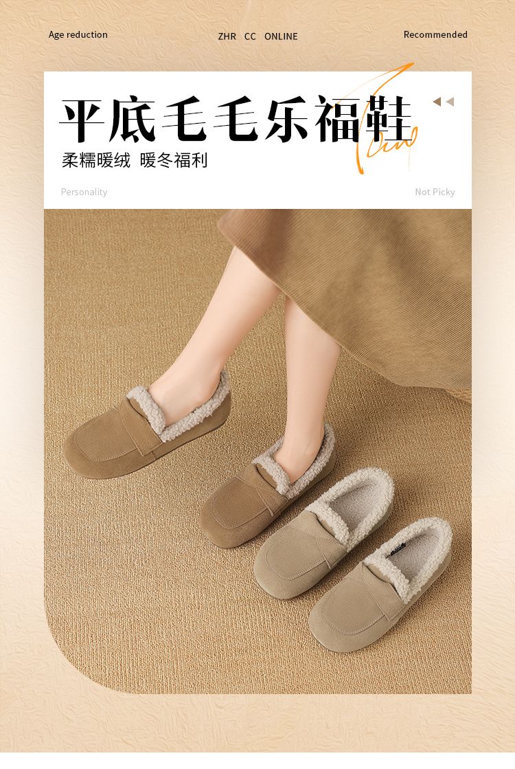 ZHR则则平底毛毛乐福鞋女2024新款冬季气质超软女鞋加厚加绒鞋子