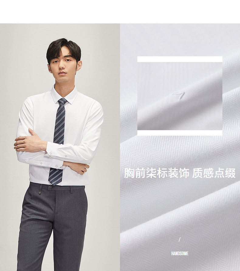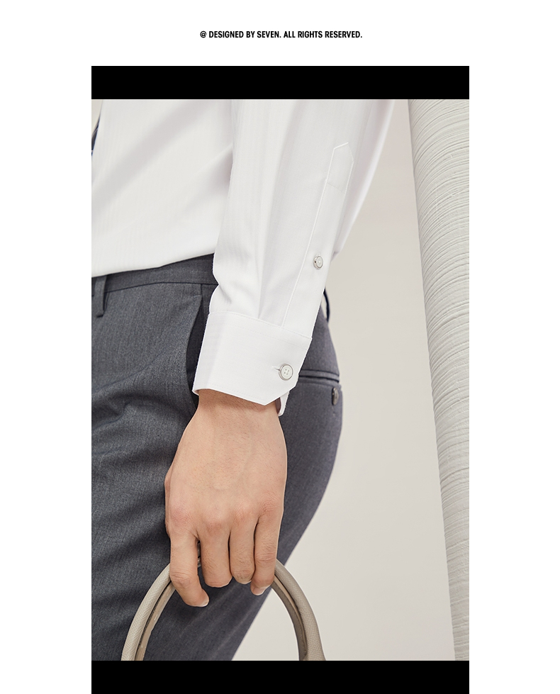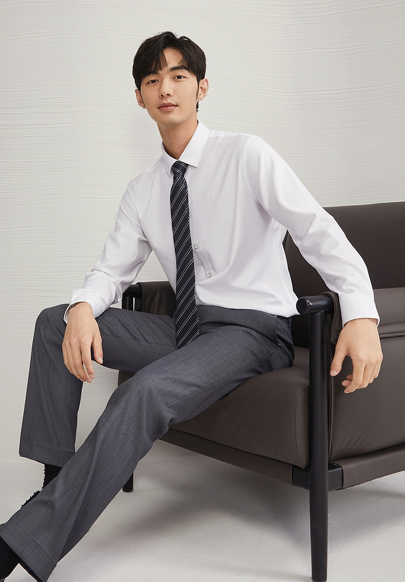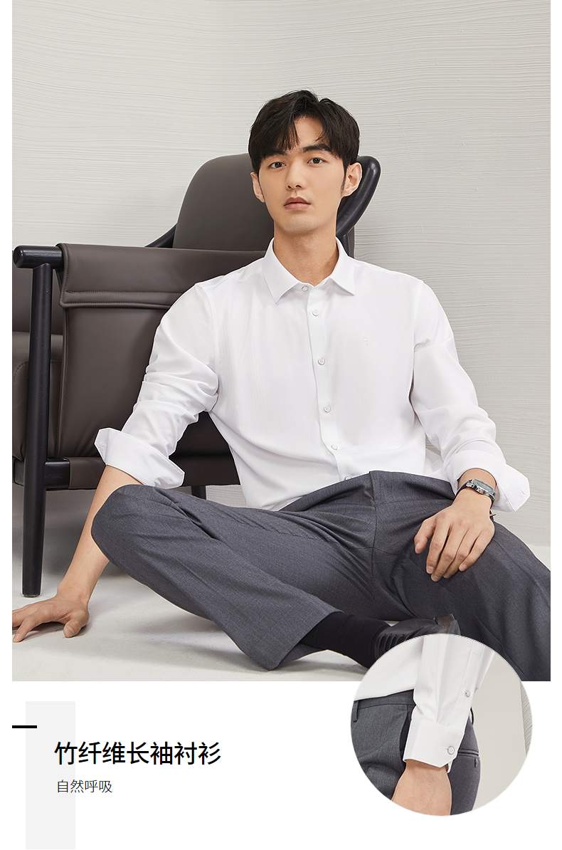 【含竹纤维】柒牌长袖衬衫男2024秋季新款色织格商务休闲白色衬衣 127A70400