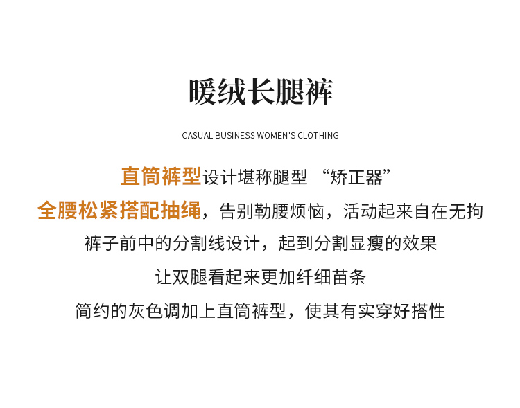 【商场同款】CNT5017 “ 2色暖绒长腿裤 ”细腻的绒毛层有效锁温 自在无拘直筒裤型
