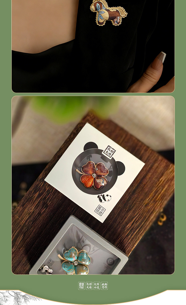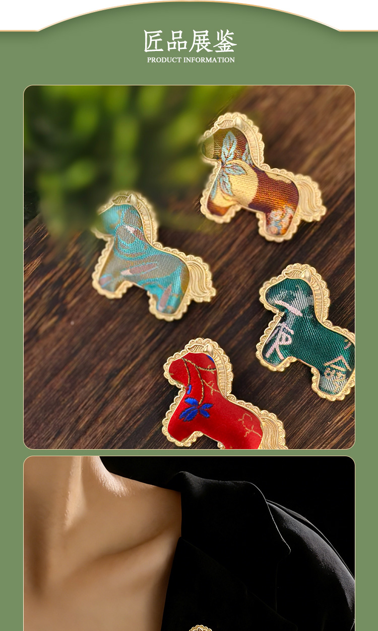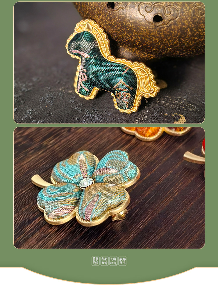 【蜀锦饰品:胸针】礼好天府非遗蜀锦胸针挂件 四叶玲珑/玲珑锦马多款可选 刺绣国风配饰 中国特色礼品 传统手工马年日常百搭穿搭饰品伴手礼