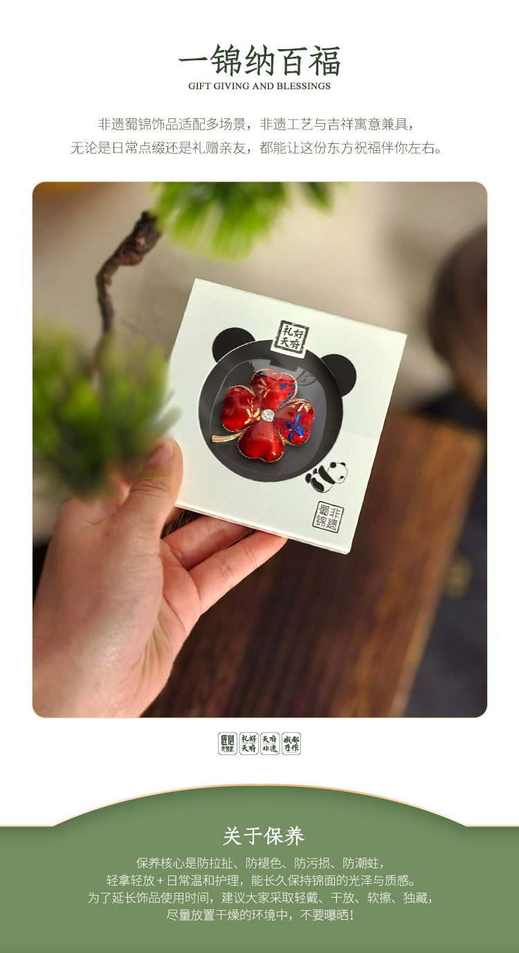 【产品品名】礼好天府蜀锦胸针•四叶玲珑;