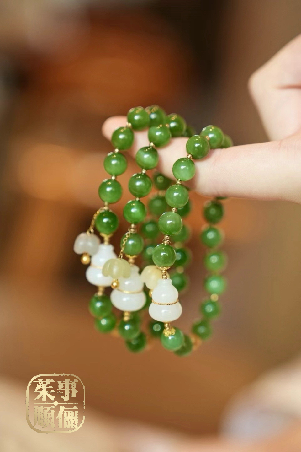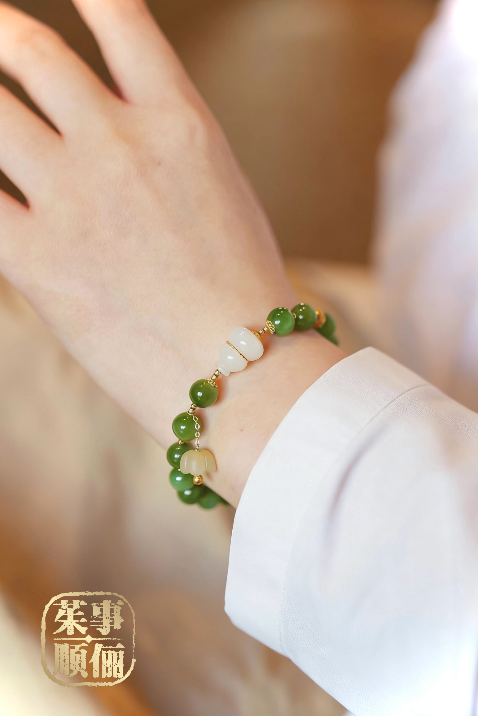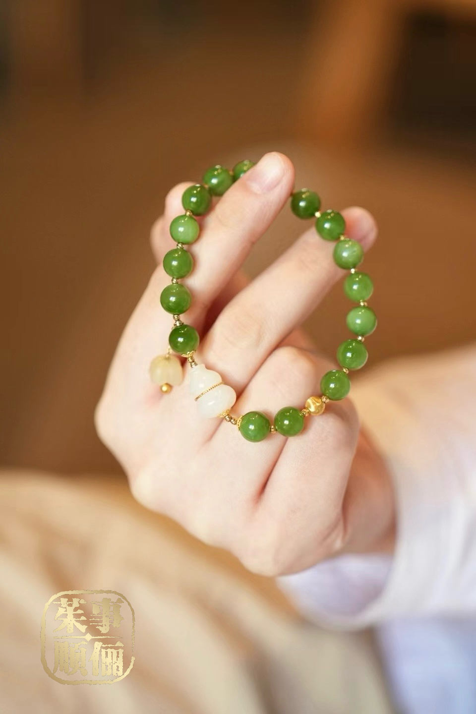 【茱事顺俪】18k金苹果绿和田碧玉手串