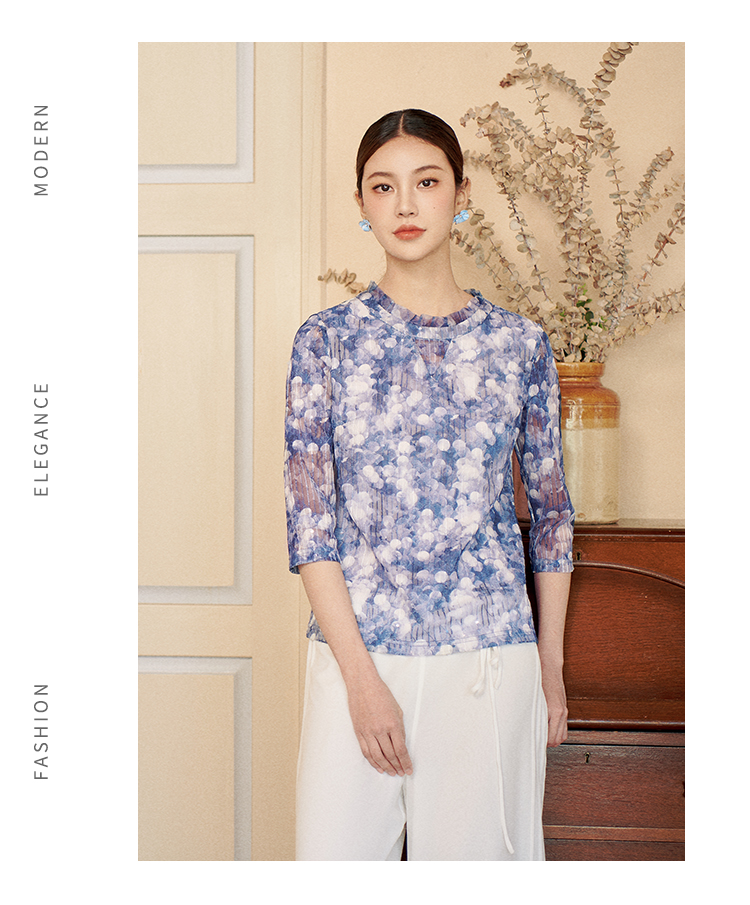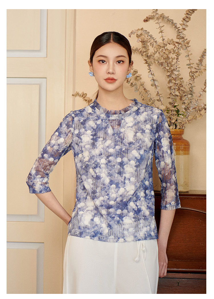 佐尔美秋季新款气质七分袖长袖衬衣女M41CC02