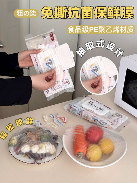 免撕抗菌保鲜膜套: 一款让你爱上厨房的神器 你是不是常常为保存剩菜剩饭而烦恼? 传统保鲜膜难撕还容易打卷 使用体验简直“灾难”?