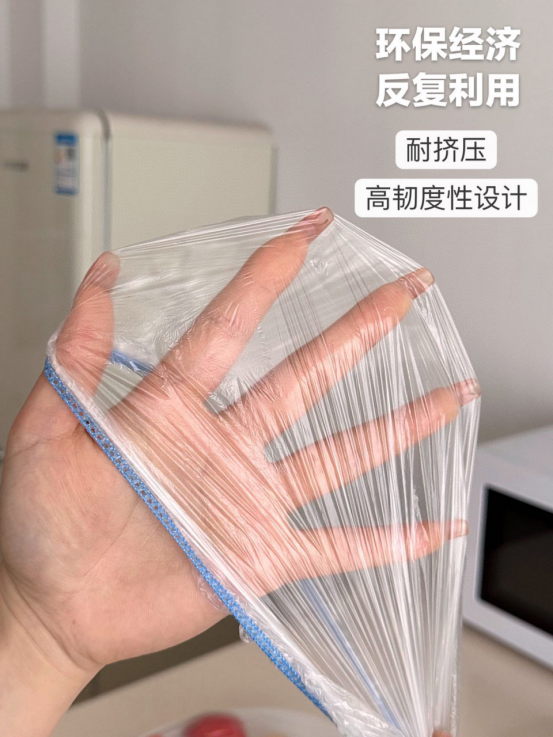 如果你经常需要保鲜存储 或者追求简约高效的厨房生活方式 免撕抗菌保鲜膜套一定是你的首选 加厚食品级PE膜,强韧不易破 安全锁鲜0异味,可直接接触食品; 无论是忙碌的上班族、爱下厨的料理达人 还是追求高效生活的居家用户 这款免撕抗菌保鲜膜套都能成为不可或缺的好帮手