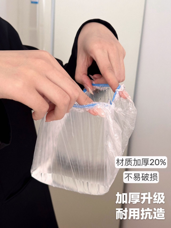 弹性力度大 包裹性密封 不用担心膜薄易破 间接导致食物串味! 多种用途: 🔘食品保鲜 🔘浴帽防水 🔘真真正正的居家必备好物!