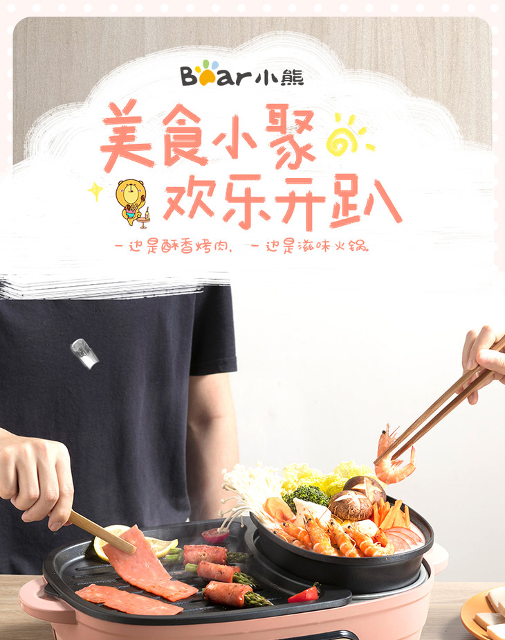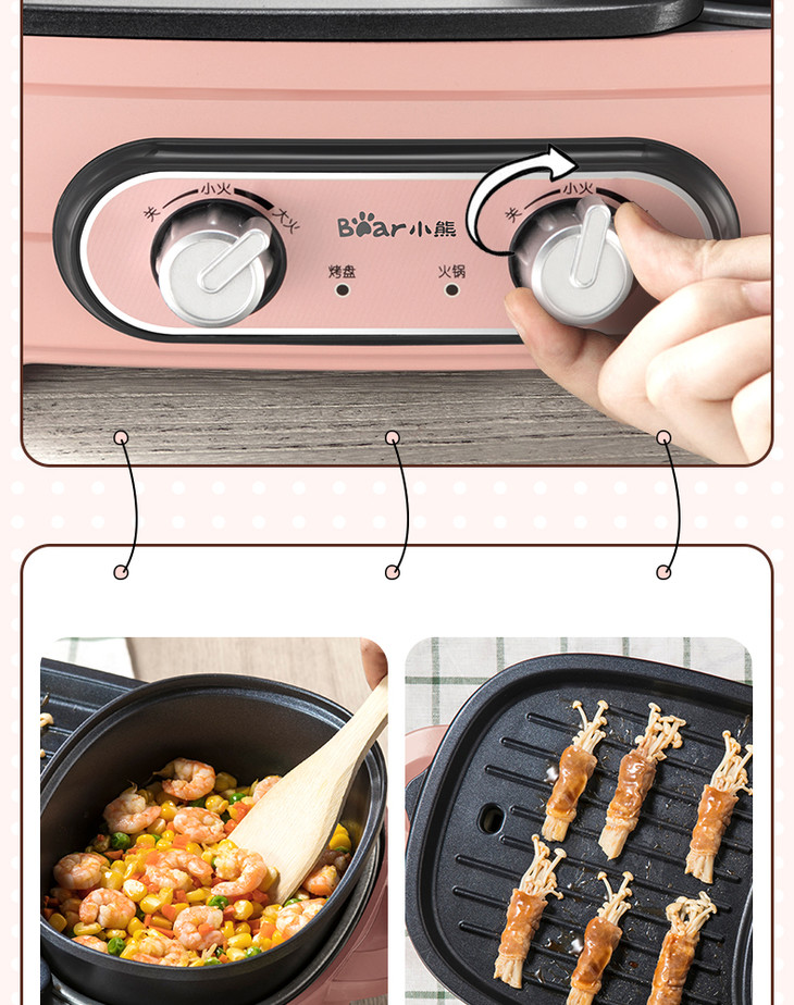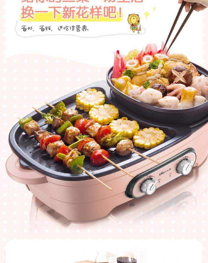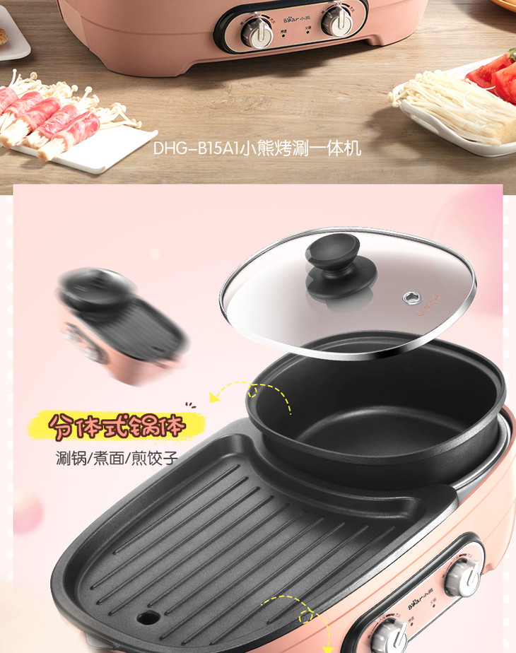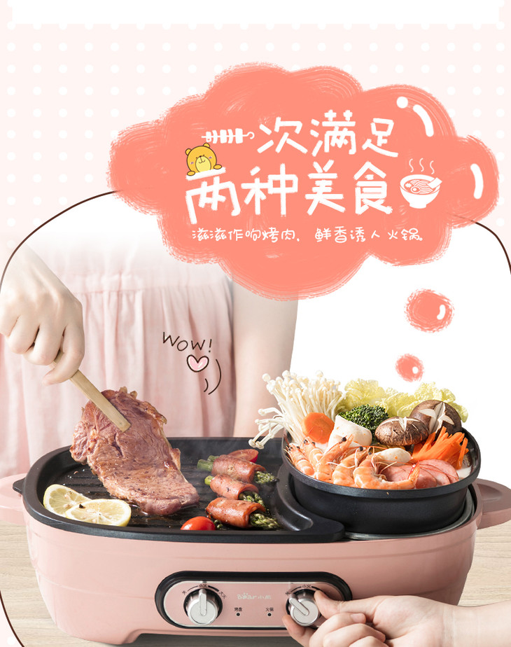 小熊(bear)电烧烤炉子家用大号电火锅家用多功能分体涮烤一体锅锅可分离电热锅DHG-B15A1