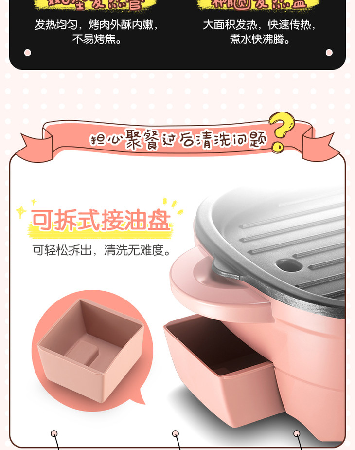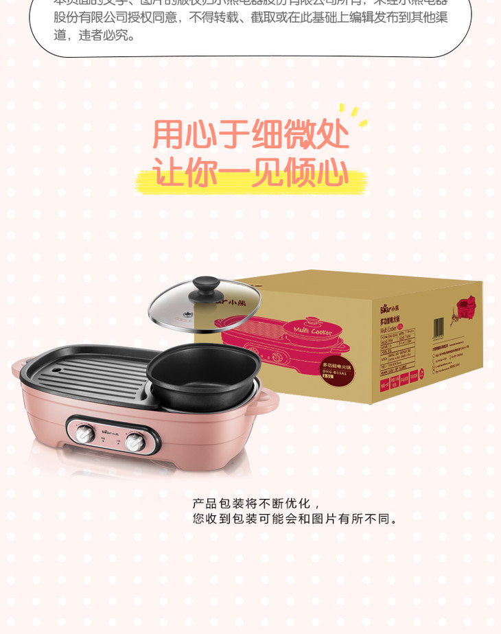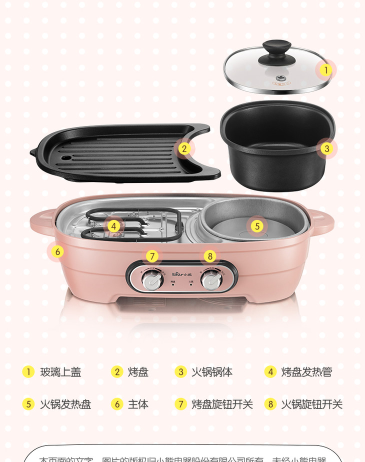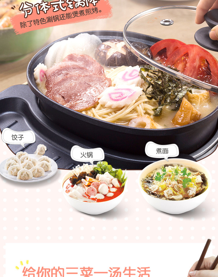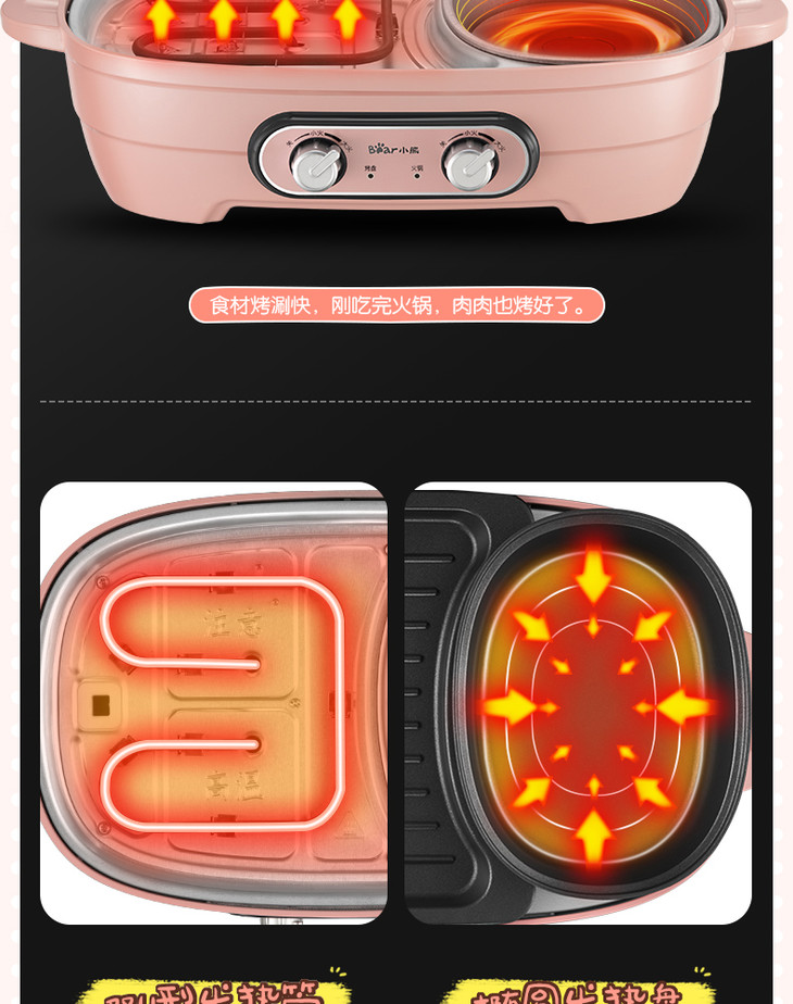 小熊(bear)电烧烤炉子家用大号电火锅家用多功能分体涮烤一体锅锅可分离电热锅DHG-B15A1