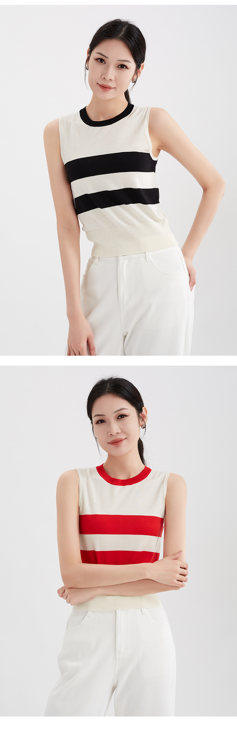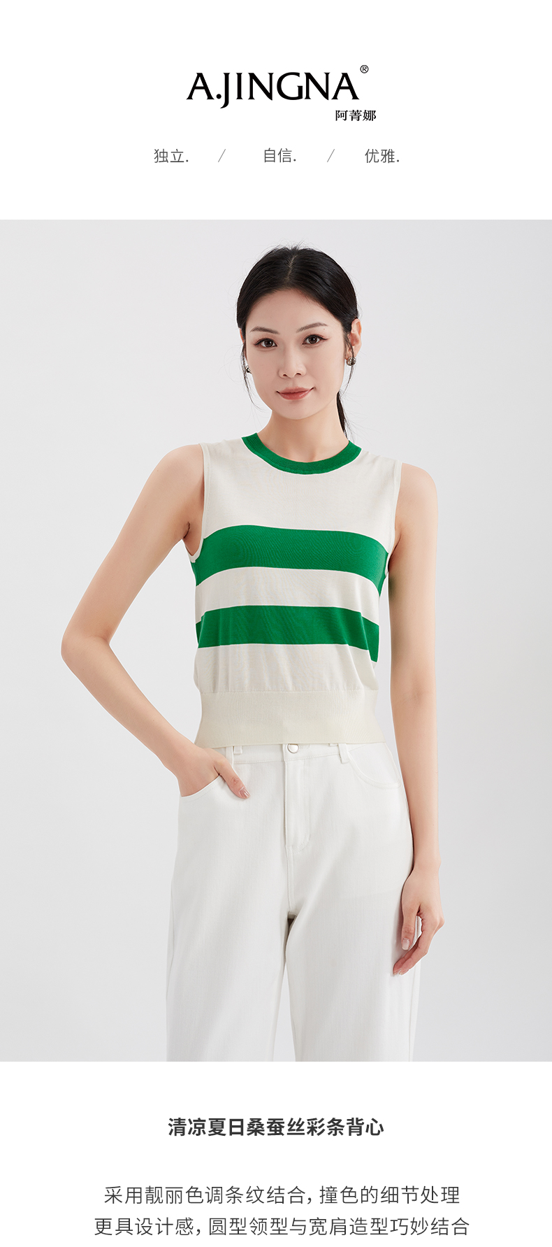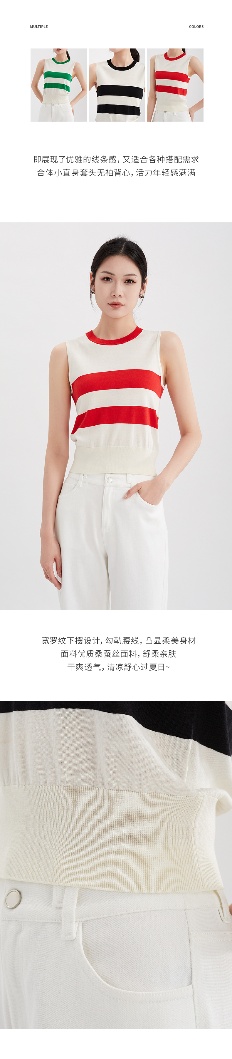 【特价不退换】阿菁娜清凉夏日桑蚕丝彩条背心F29X301008