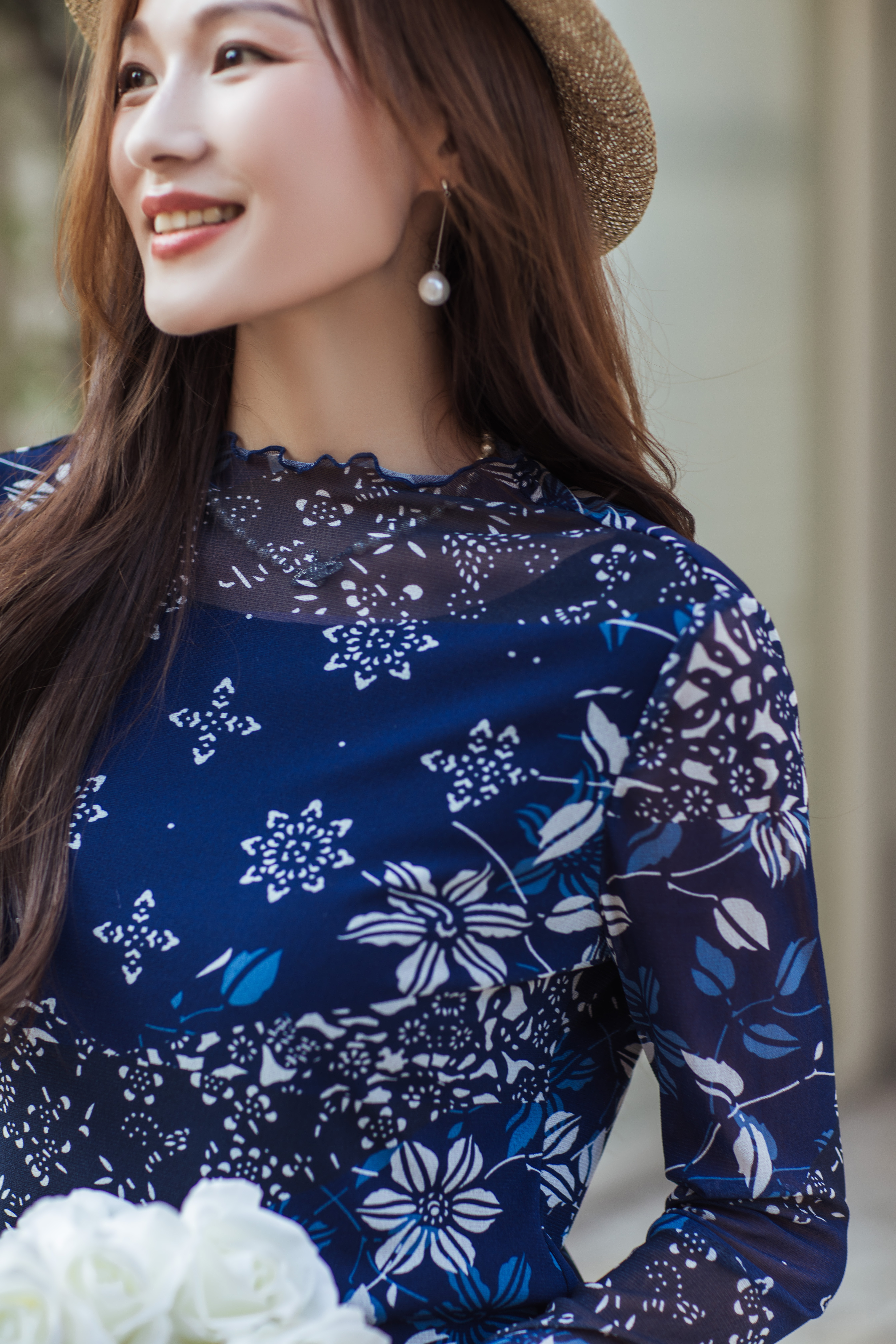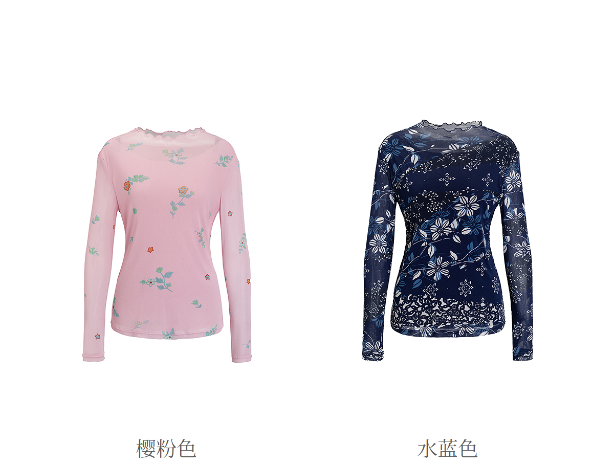 【林栖设计小店】(现货)印花T恤多色传统蓝印花纹修身显瘦2026春季新款长袖上衣T1961058