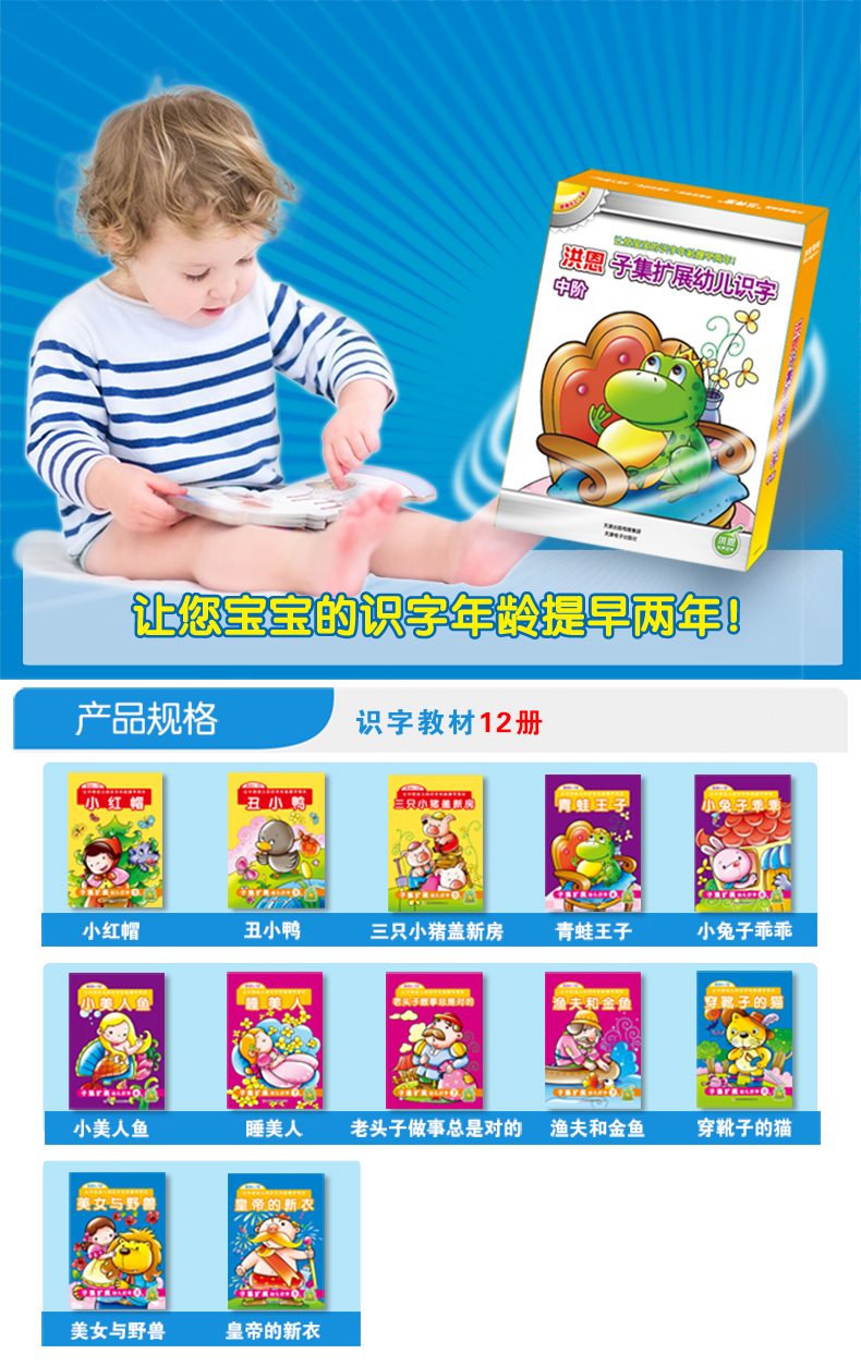 洪恩子集扩展幼儿识字 中阶 12册(支持洪恩818点读笔点读)限时秒杀