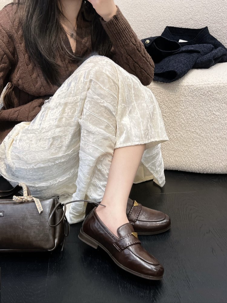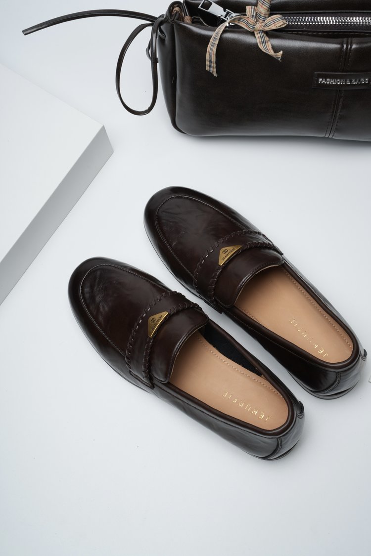 【JEHURFIE/纪华菲】手抓牛皮 手工编织都市通勤精致乐福鞋 AB26025