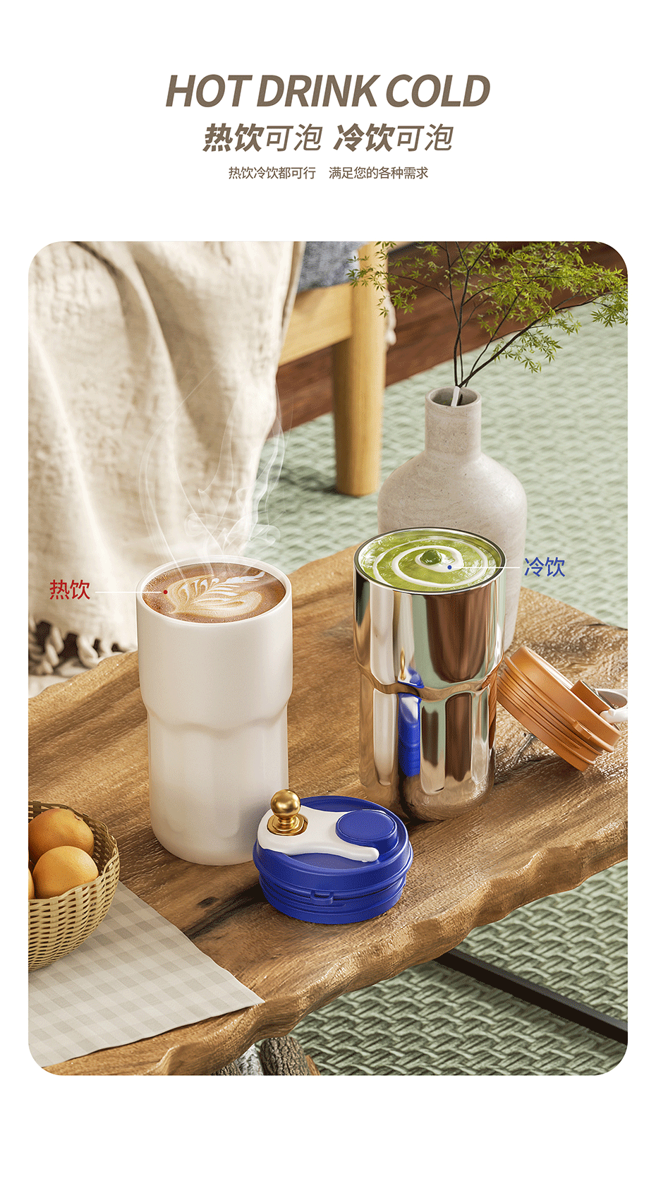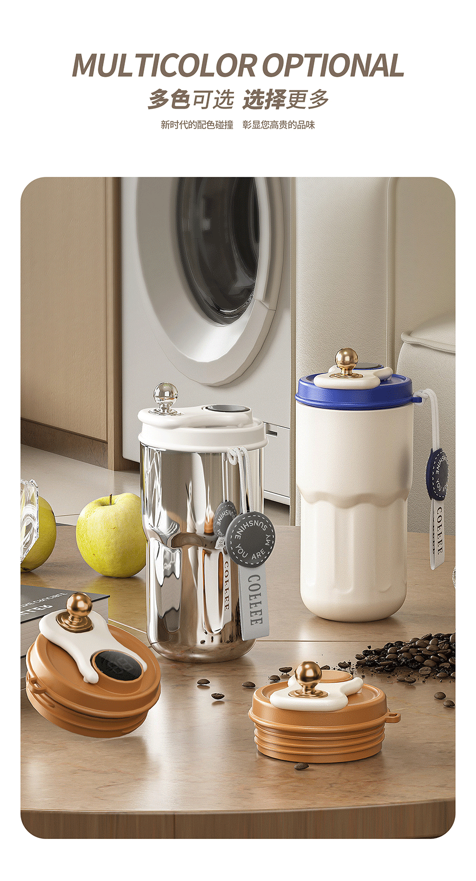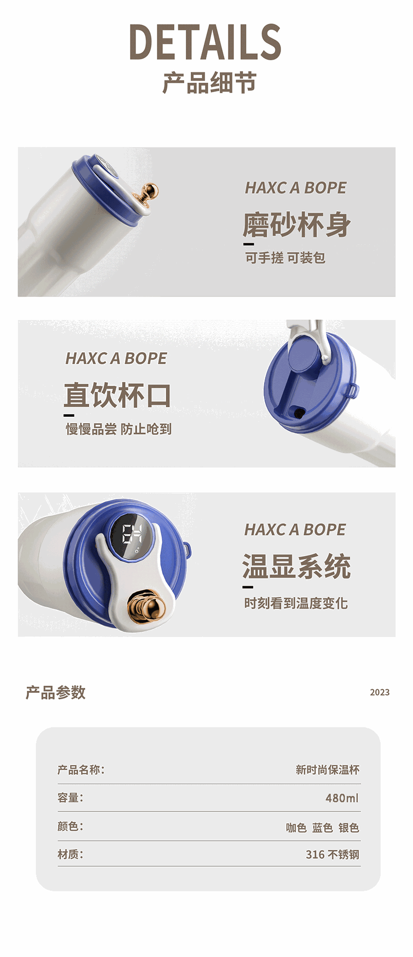 【高颜值轻奢香奈咖啡杯】316不锈钢显温随行水杯
