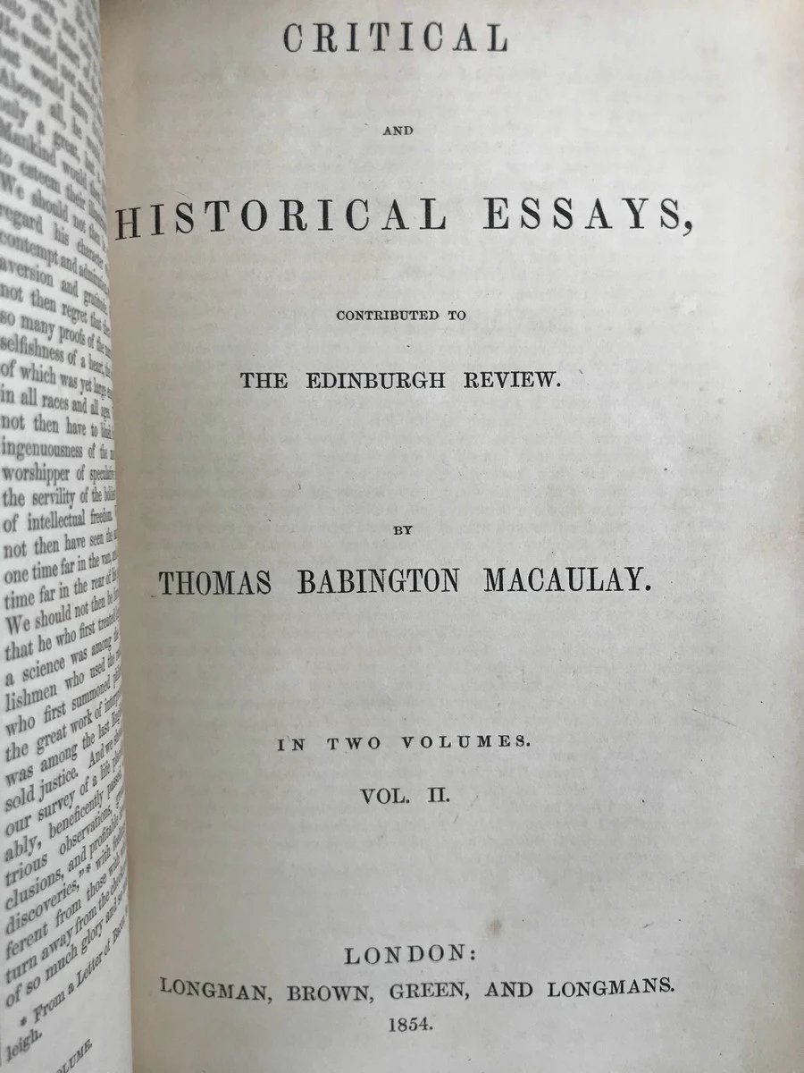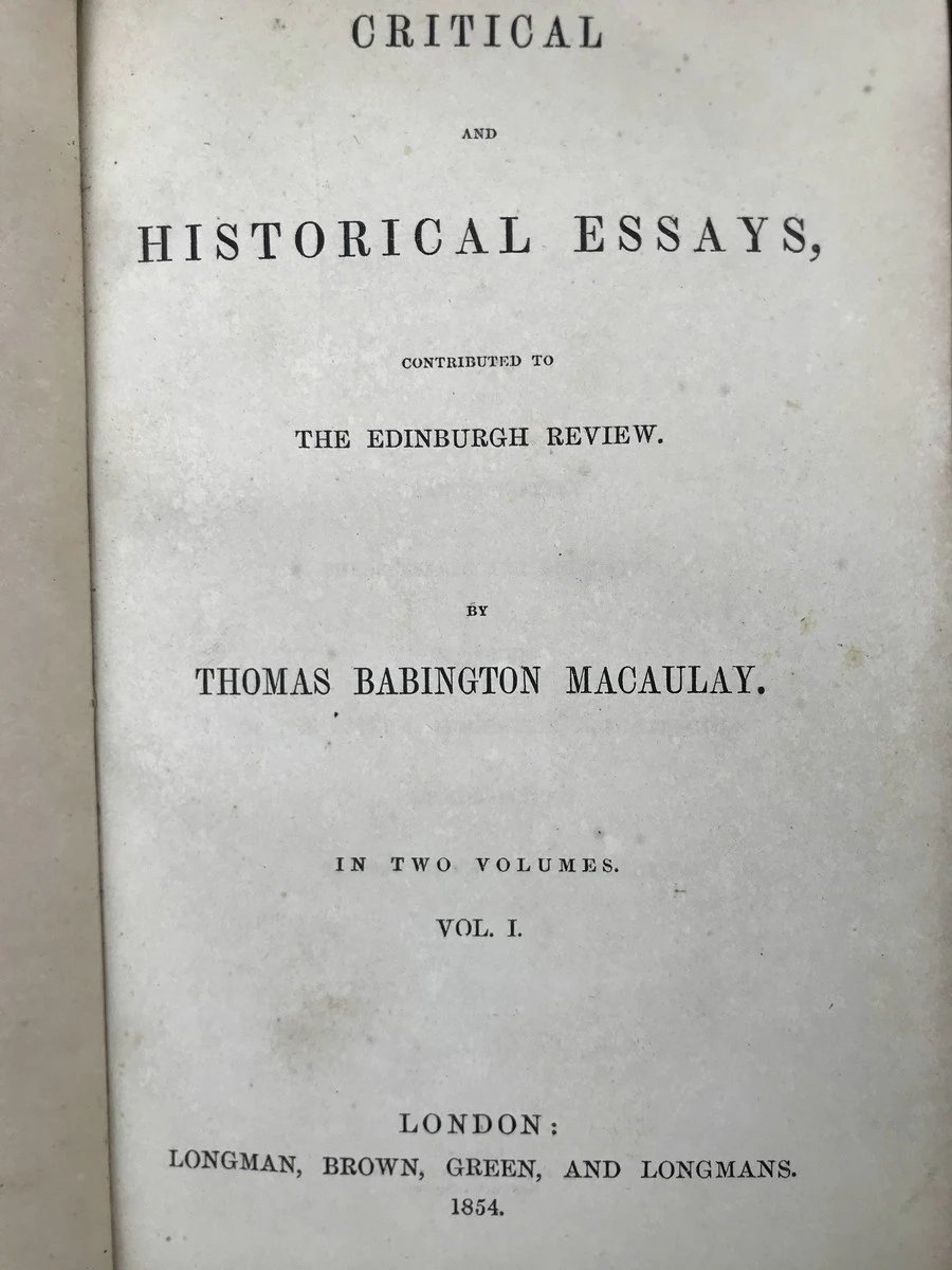 含藏书票!1854年 麦考莱评论与历史随笔集(全2卷合订本) 全真皮精装32开