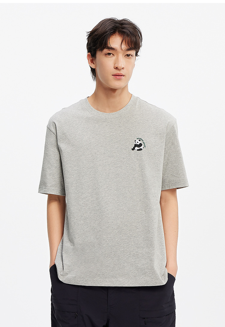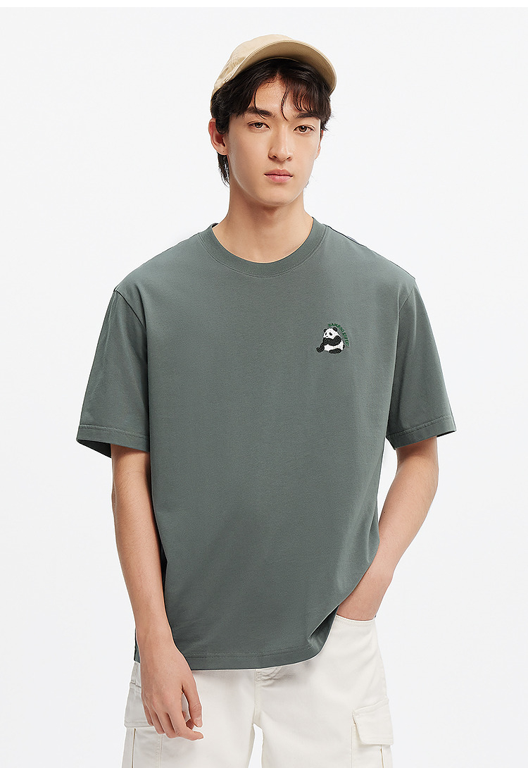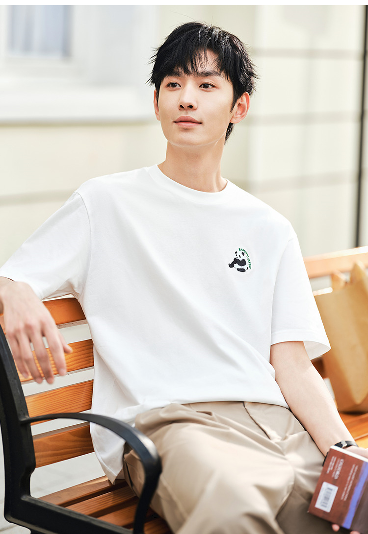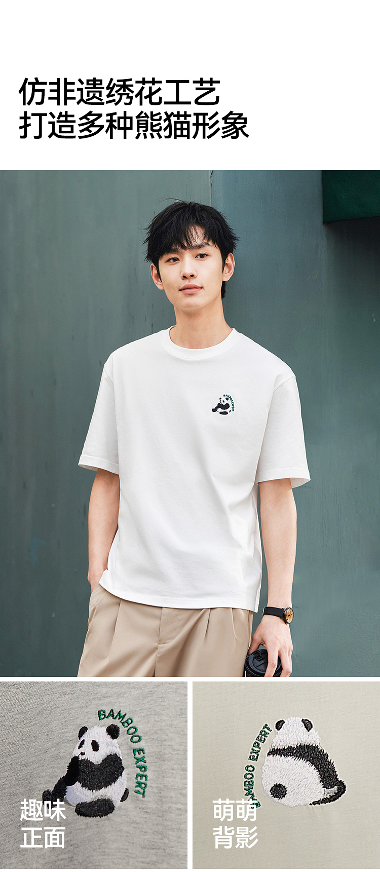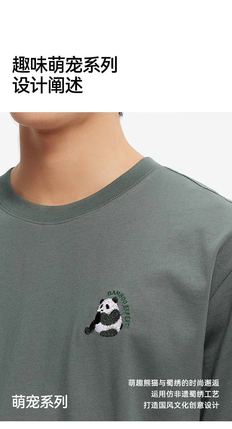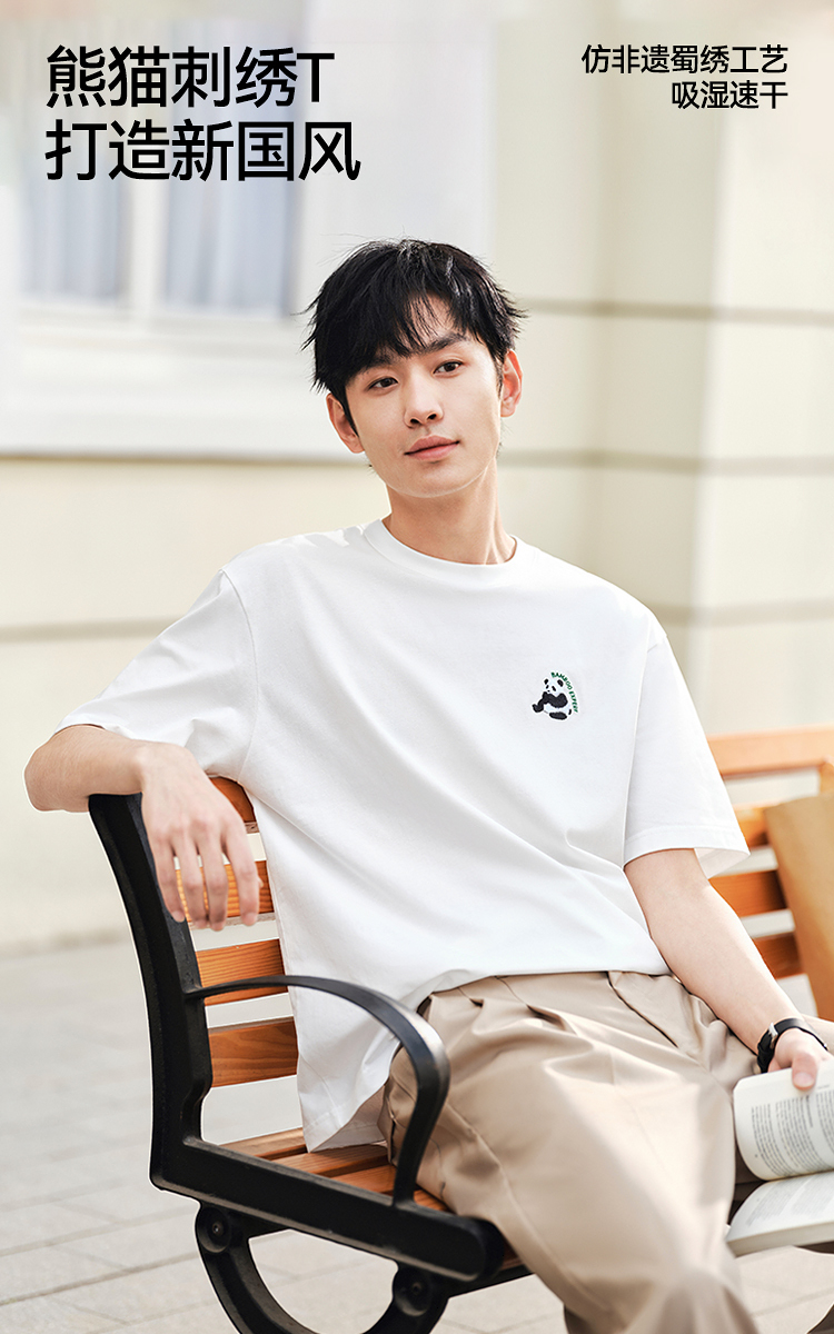 【99元任选2件】森马短袖T恤男吸湿速干国潮熊猫刺绣2025夏季新款上衣针织休闲装