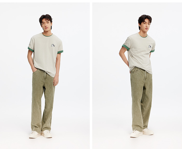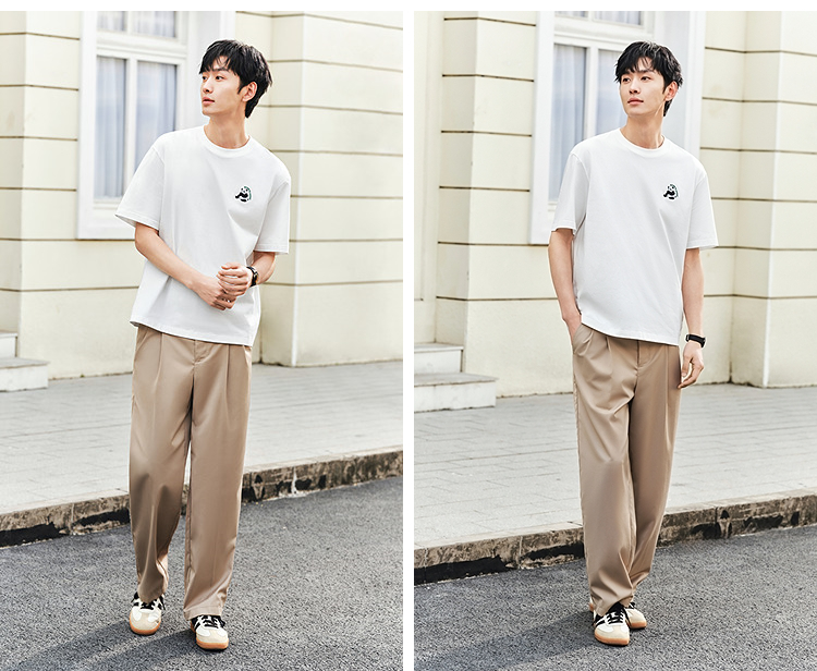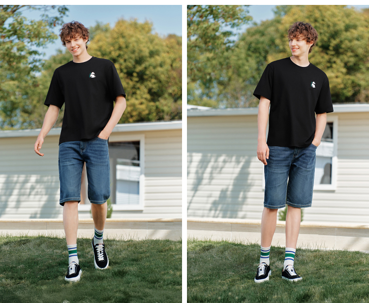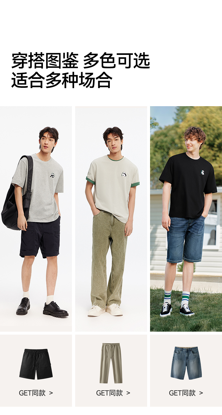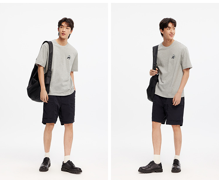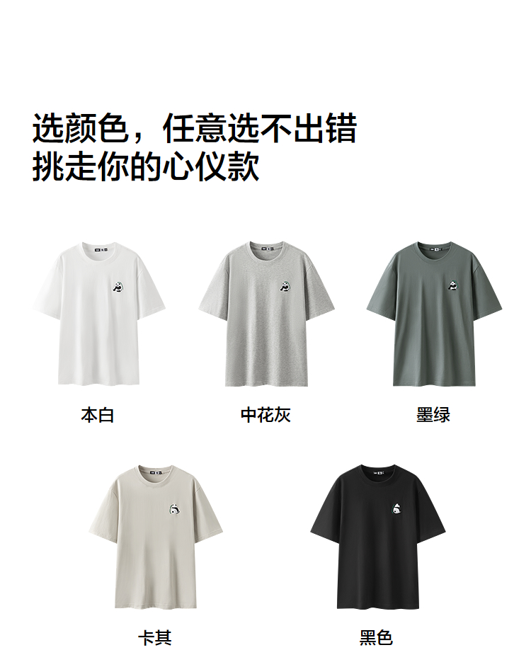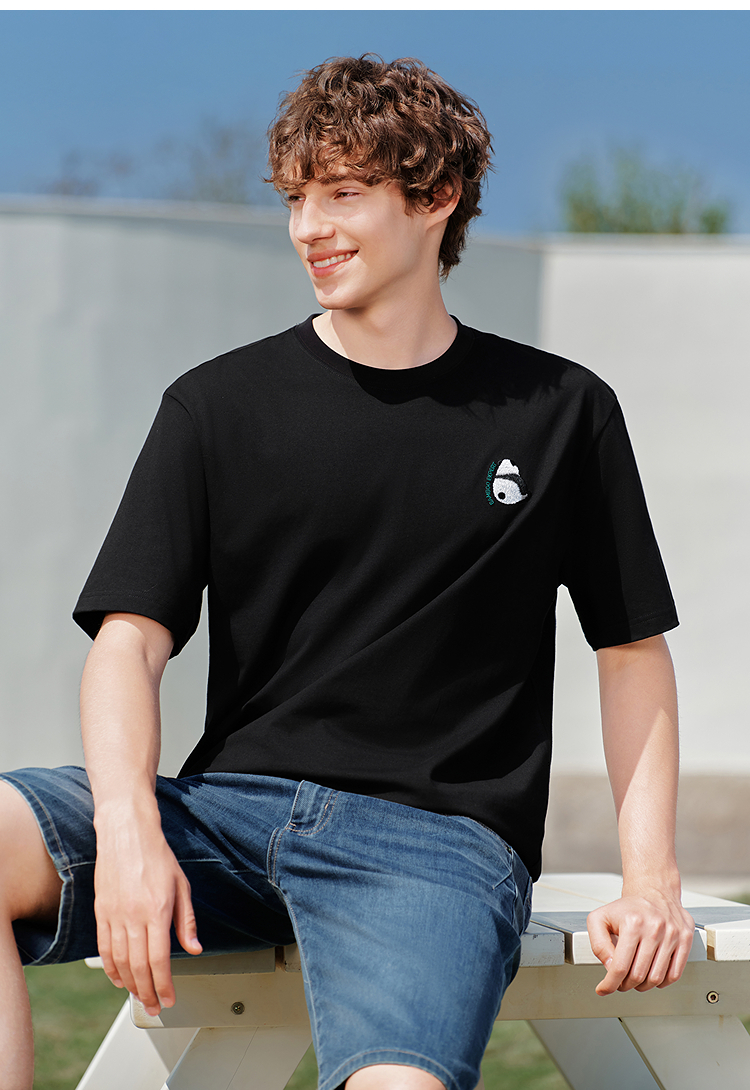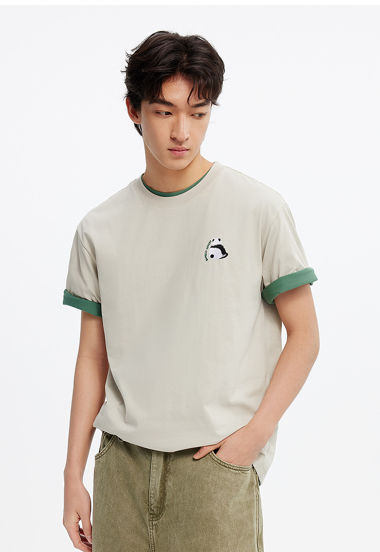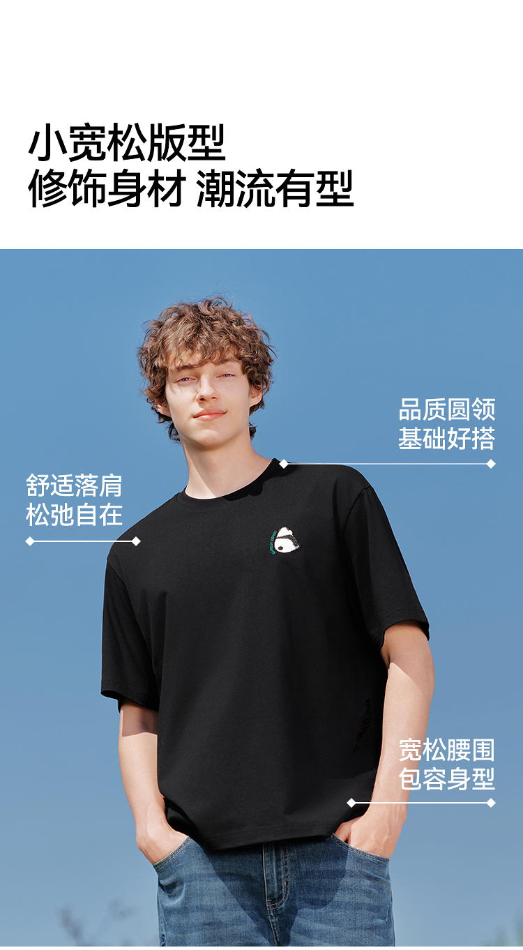 【99元任选2件】森马短袖T恤男吸湿速干国潮熊猫刺绣2025夏季新款上衣针织休闲装