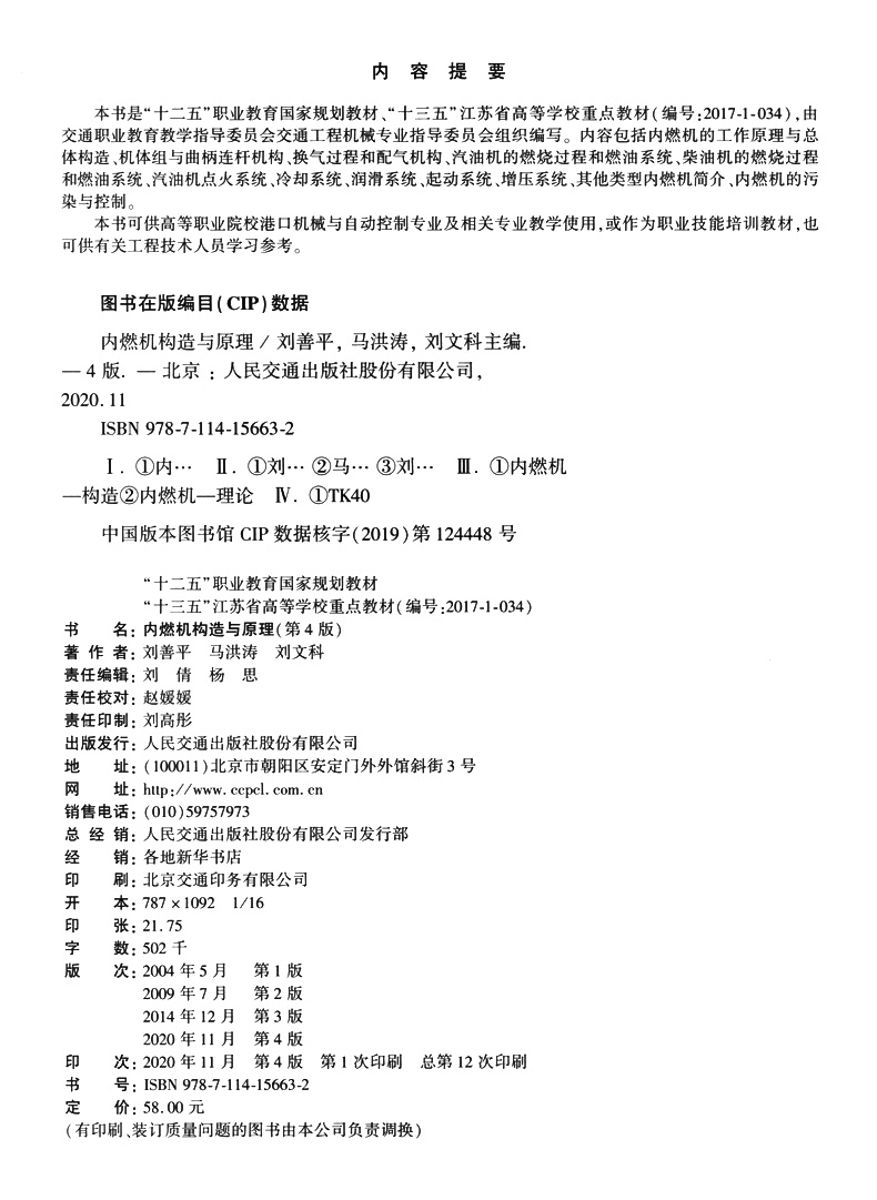 书名:内燃机构造与原理(第四版)