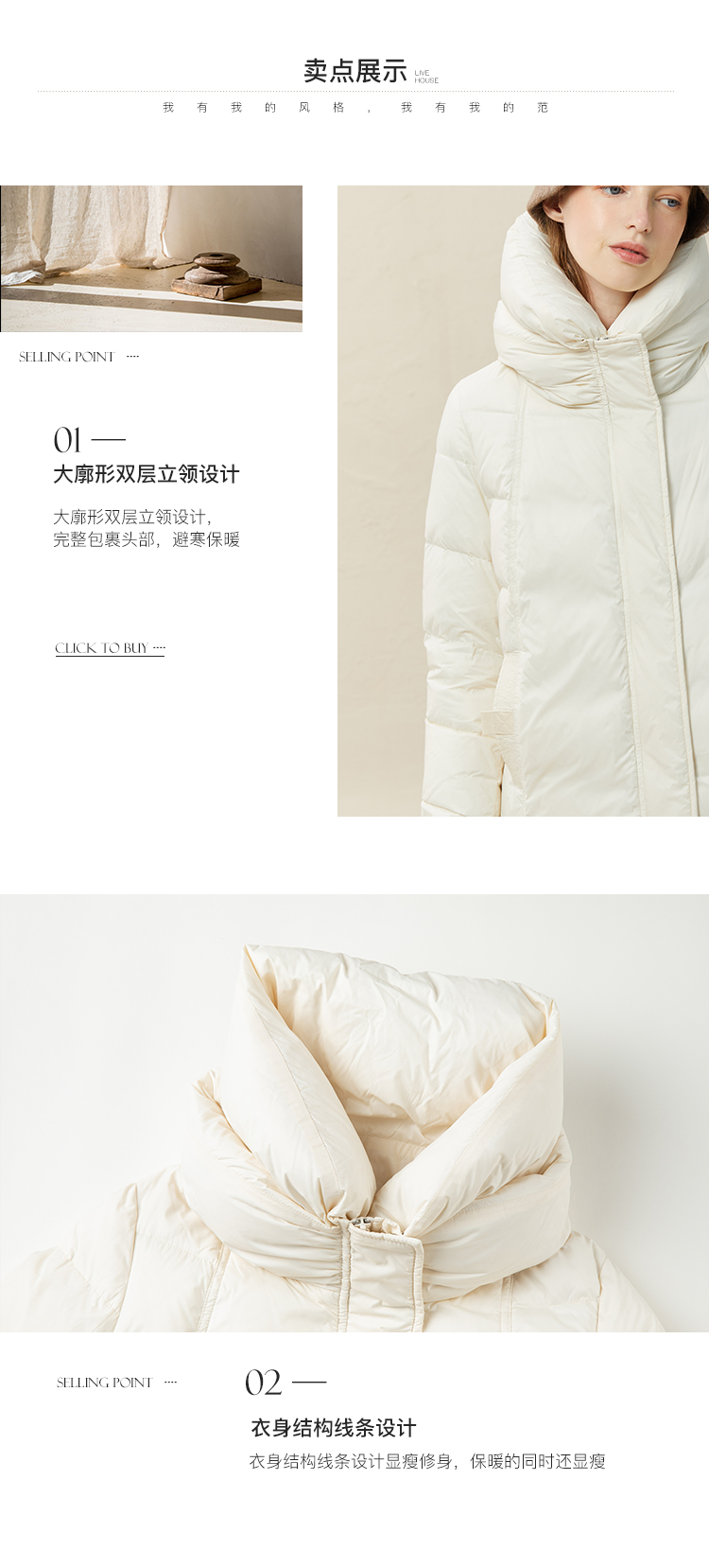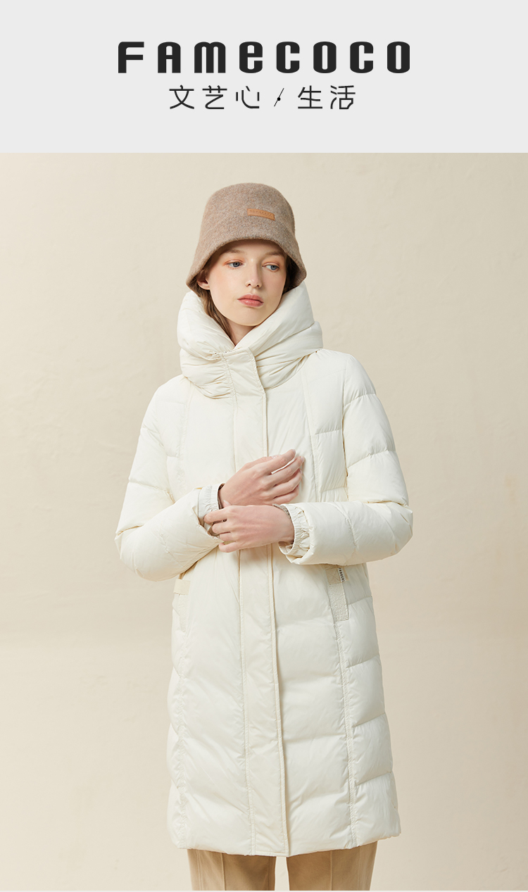 Famecoco范可儿原创双层立领羽绒服女中长款冬季保暖外套F228AD021