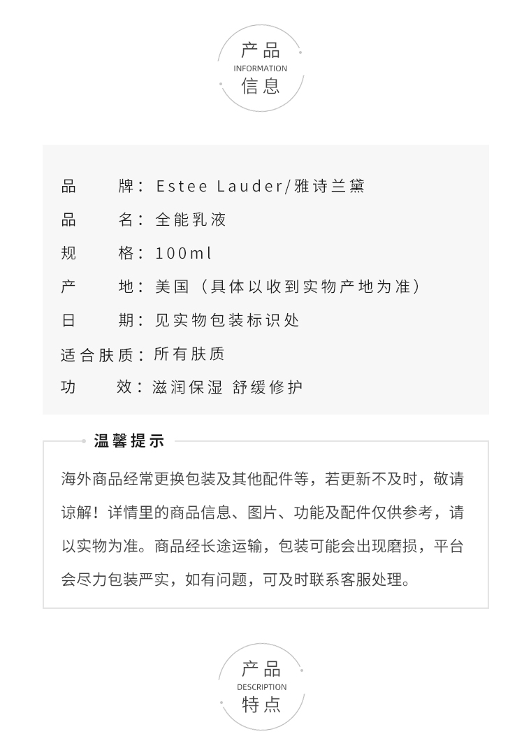 雅诗兰黛全效滋润全能乳液100ml干皮亲妈保湿滋润补水大白瓶【CDF】