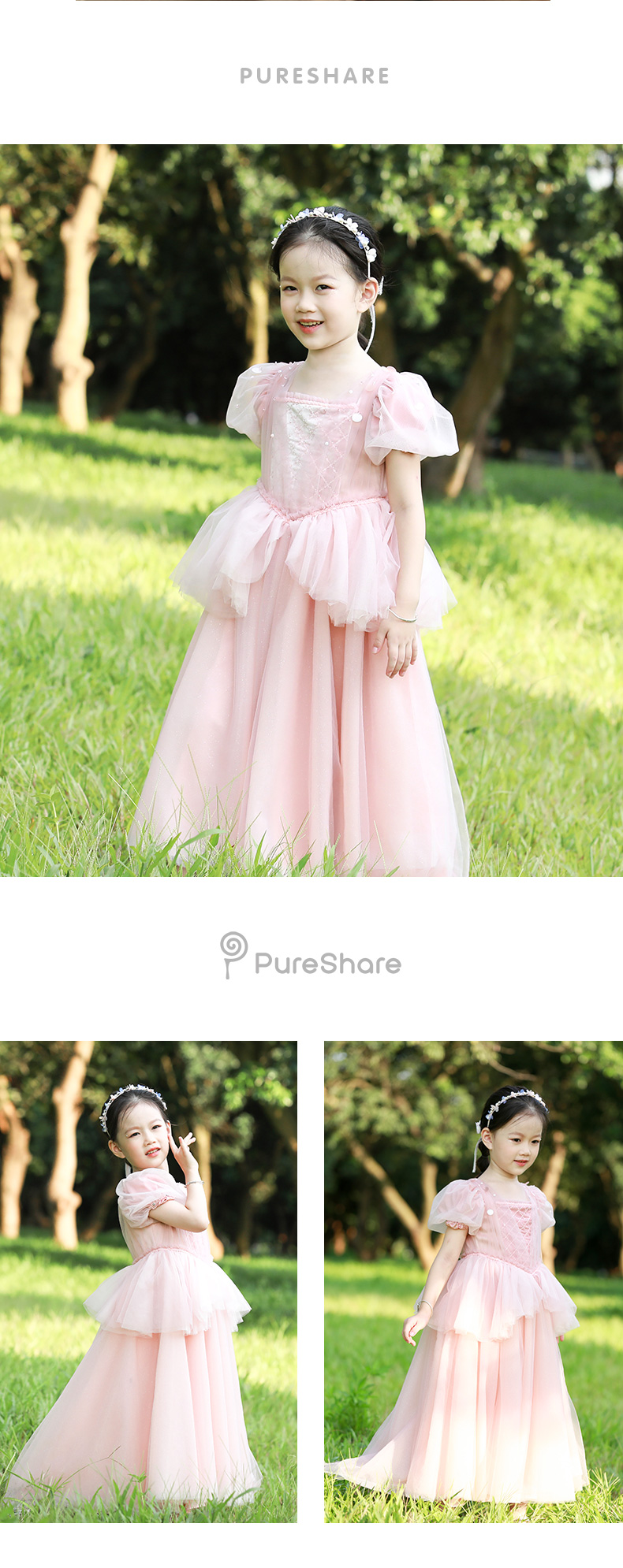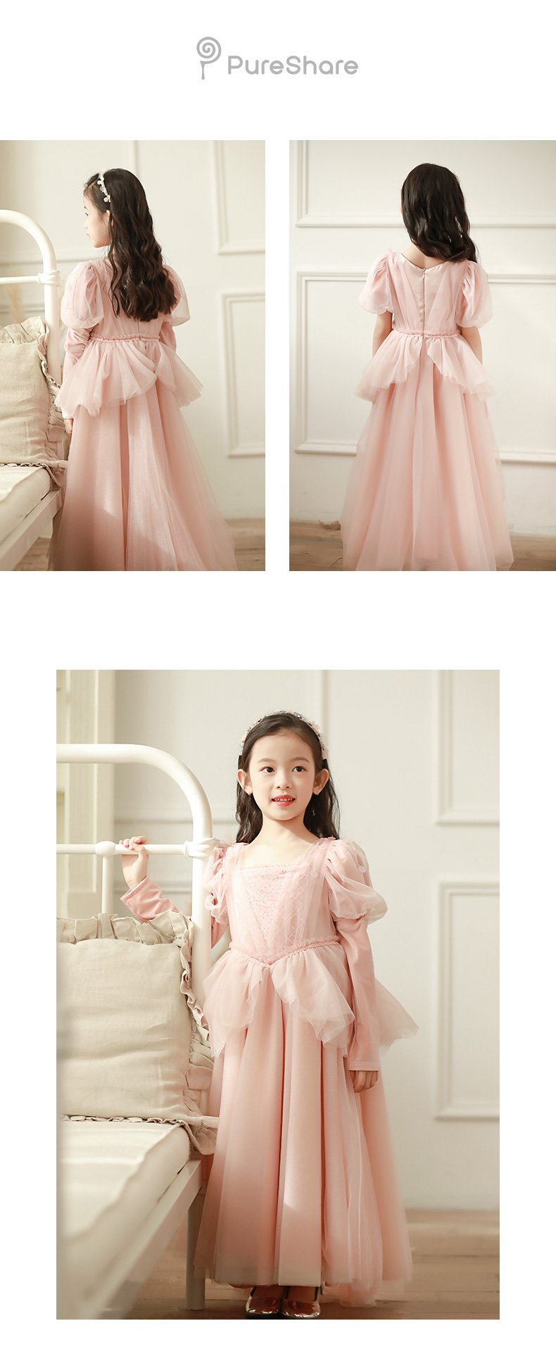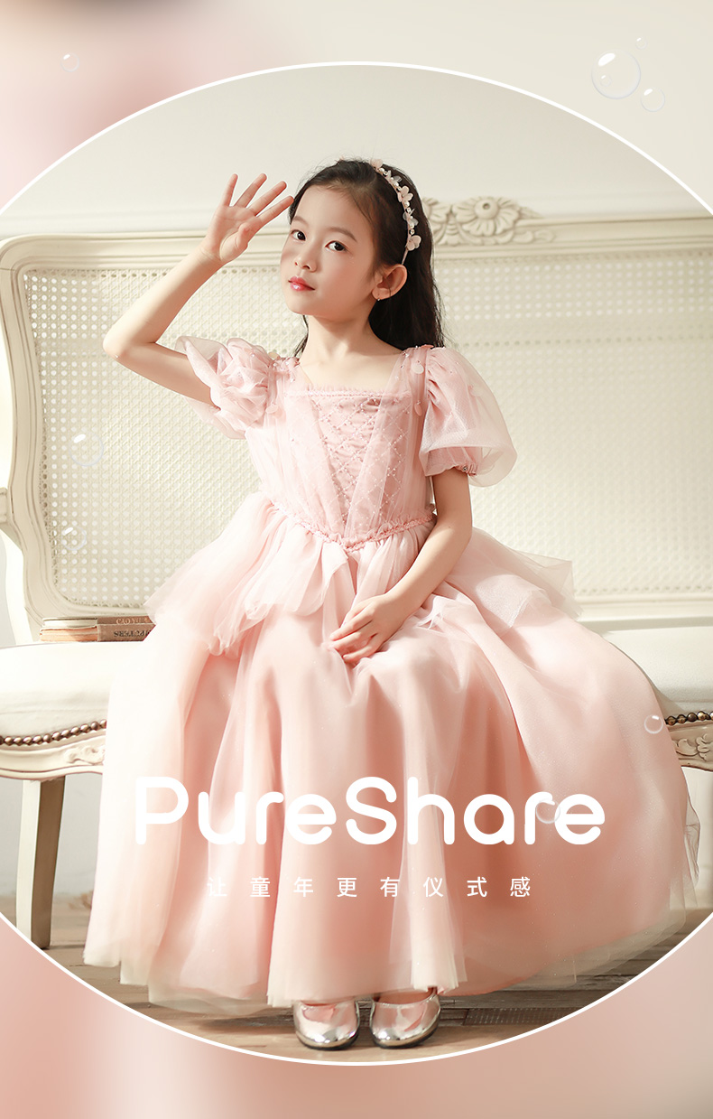 pureshare 睡美人公主裙女童走秀礼服2021年秋季高定生日钢琴演出服落樱公主