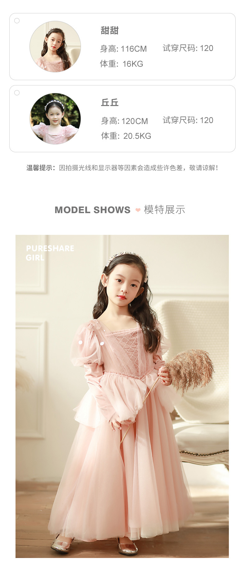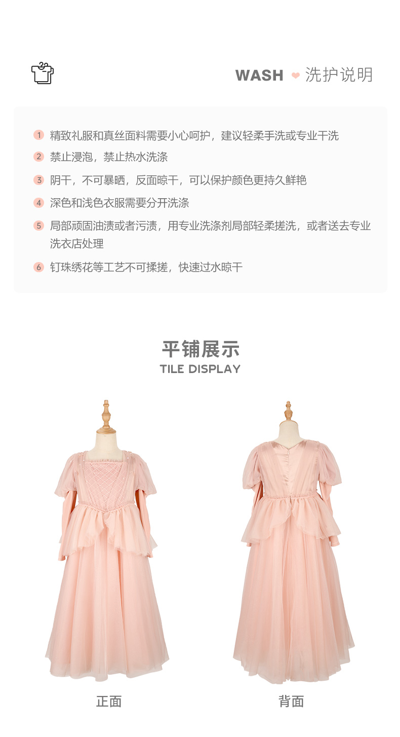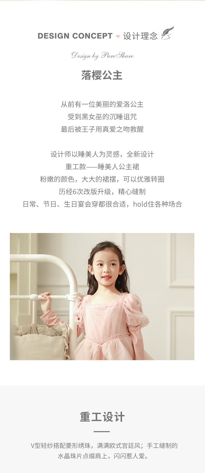pureshare 睡美人公主裙女童走秀礼服2021年秋季高定生日钢琴演出服落樱公主