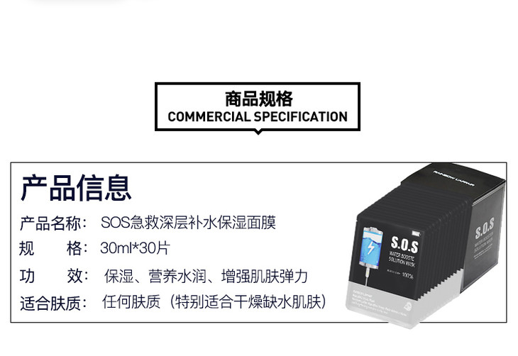 韩国 Rainbow laffair彩虹莱妃尔 SOS深层补水面膜 30片
