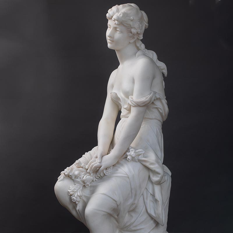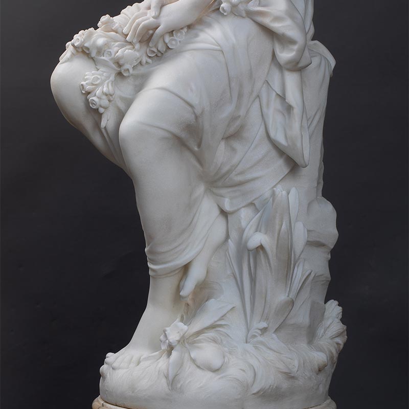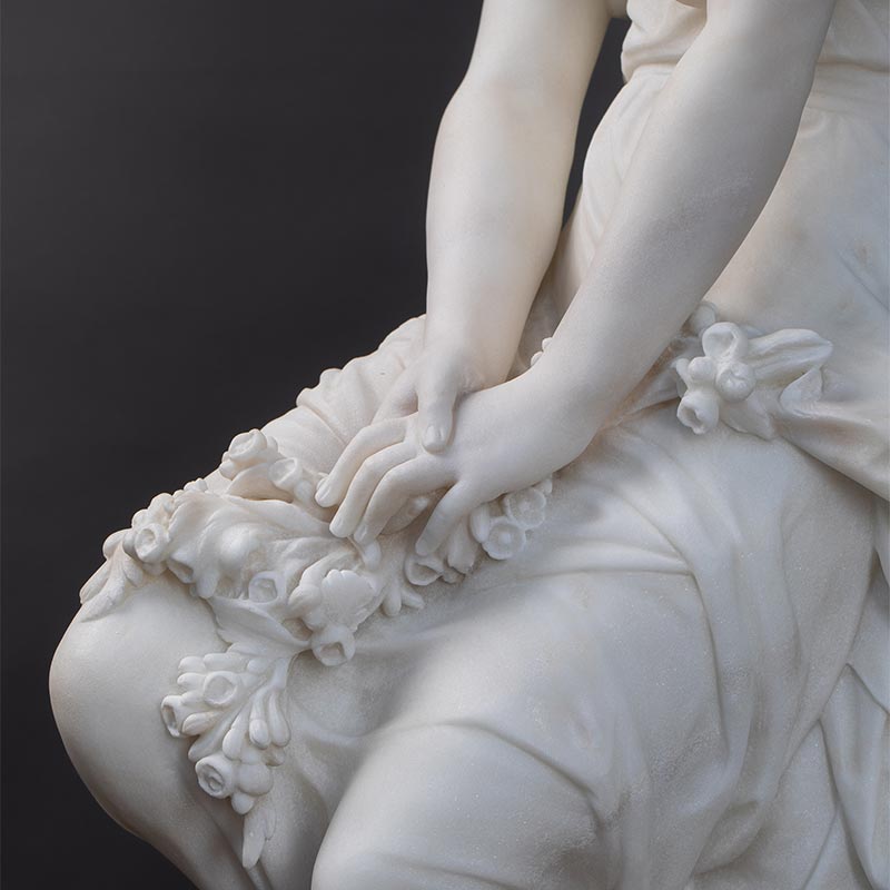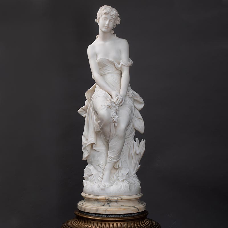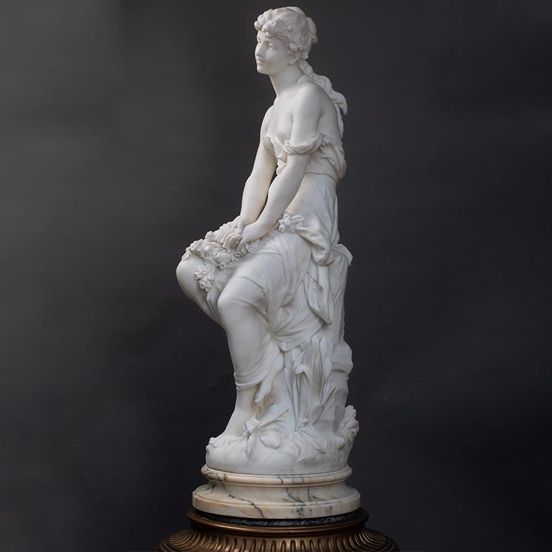 19世纪法国雕塑家Hippolyte Moreau签名创作女性人物主题卡拉拉大理石雕塑作品《梦》