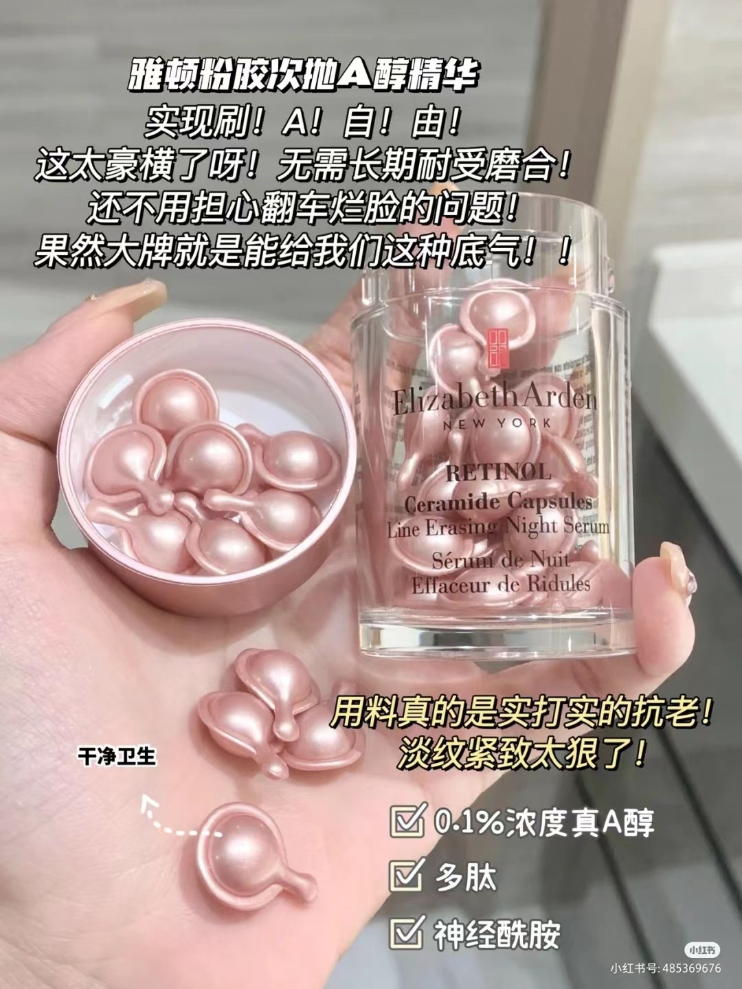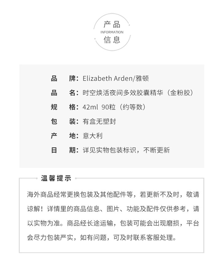 雅顿 金粉胶 ELIZABETH ARDEN/elizabeth arden 小粉胶 玫瑰粉胶 时空焕活夜间多效胶囊精华液粉胶 约90粒/60粒/30粒