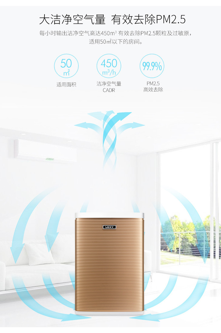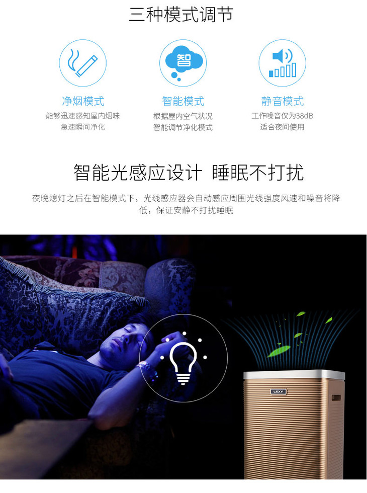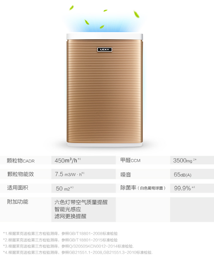 莱克(507351 )(LEXY)空气净化器 KJ603-F 大空气洁净量 除甲醛 除PM2.5 智能光感应 家用净化器