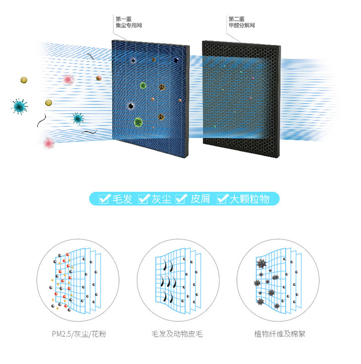 空气净化器功能:除氨,除甲醛,除烟尘,其它,除苯,除异味,除毛发,除PM