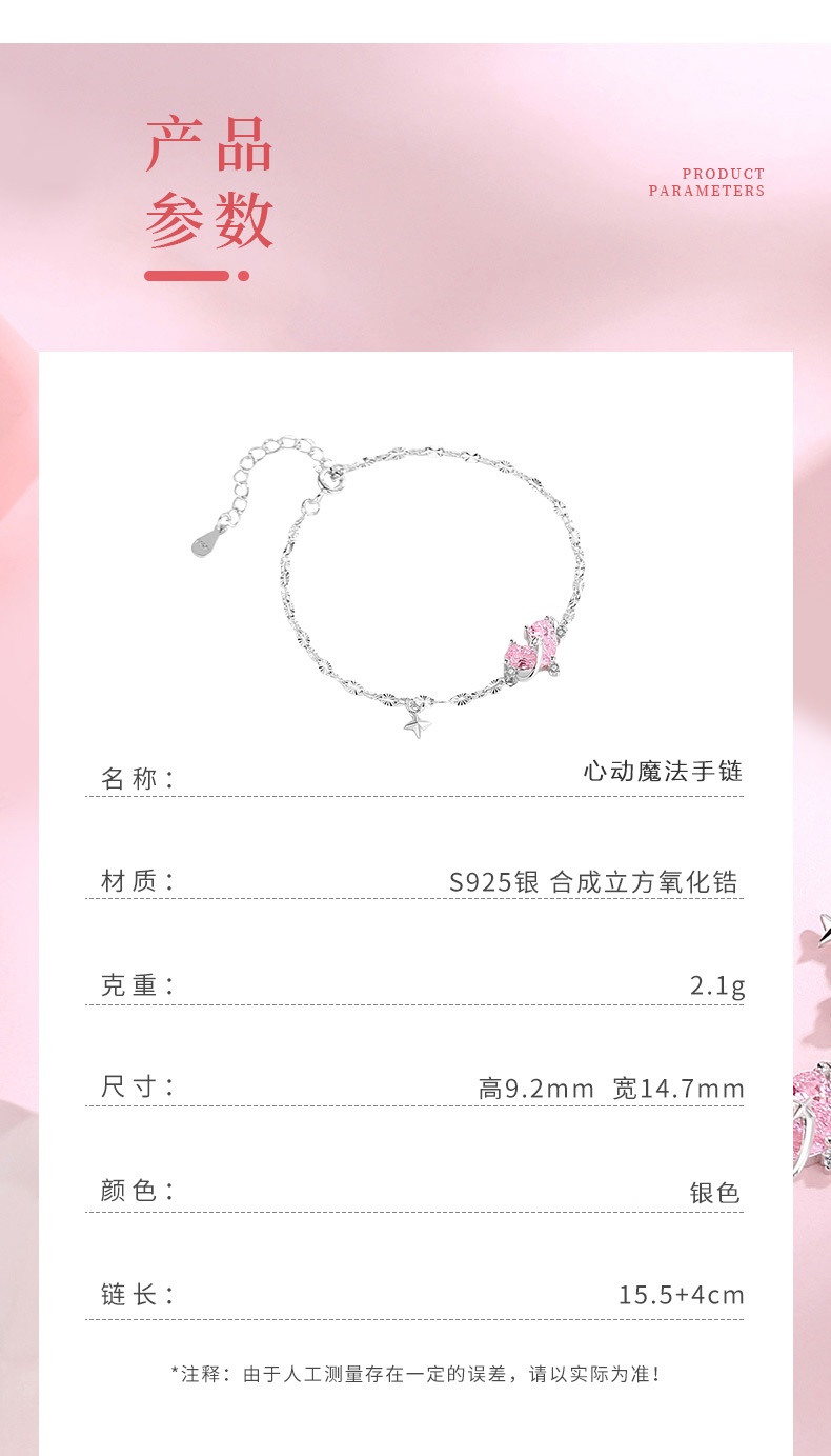 卡蒂罗/KADER 在逃公主系列 心动魔法手链 925银梦幻爱心大颗粉锆童话设计可调节手饰 梦幻俏皮甜美可爱配饰 礼盒