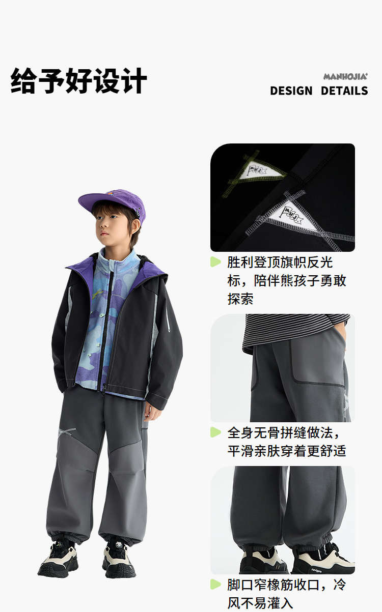 - 马拉丁旗下的城市户外潮童品牌,为3-12岁的孩子提供实用与细节设计的时尚度童装,打造现代简潮和城市户外感的着装,man游童年的冒险jia!