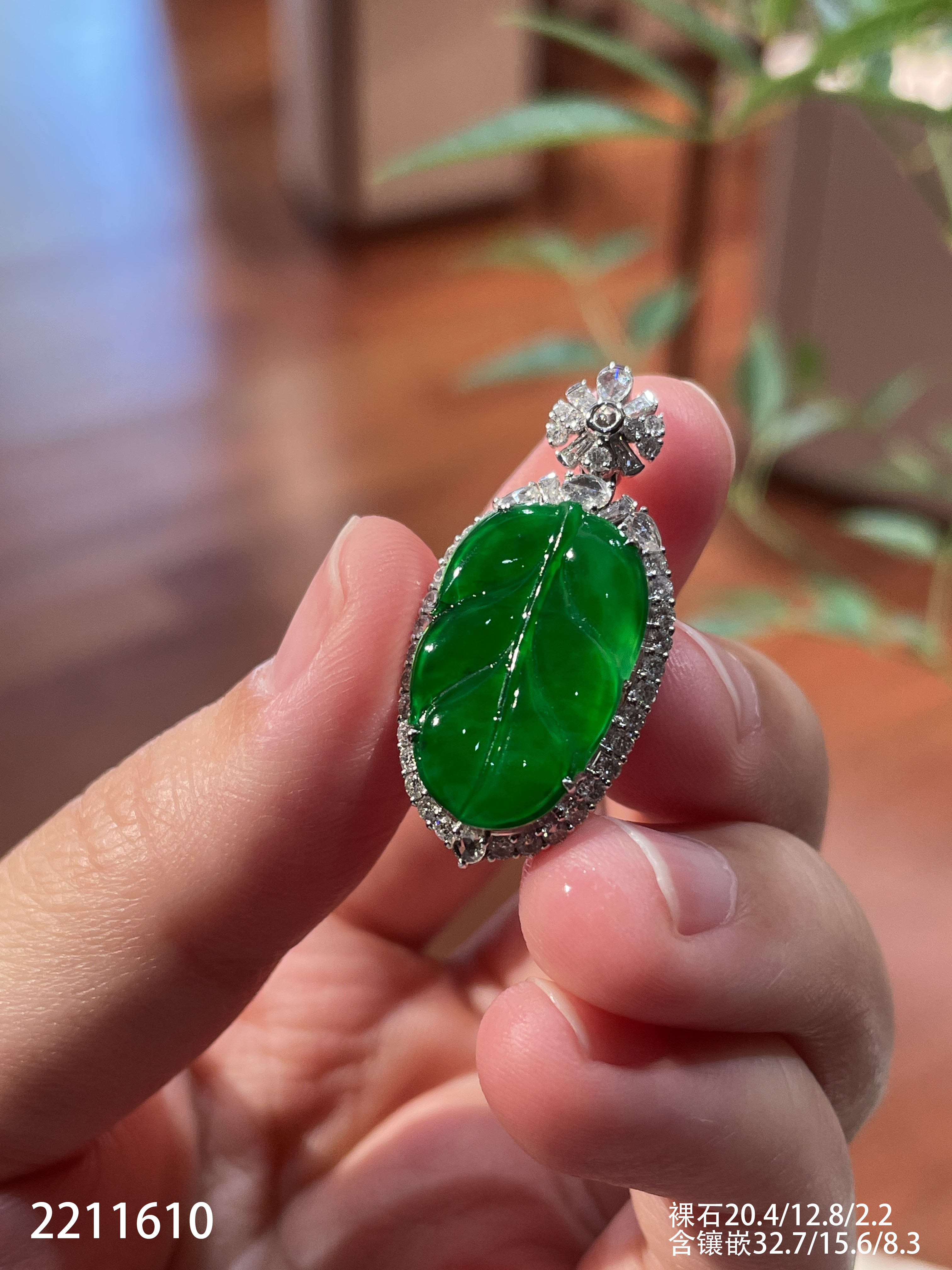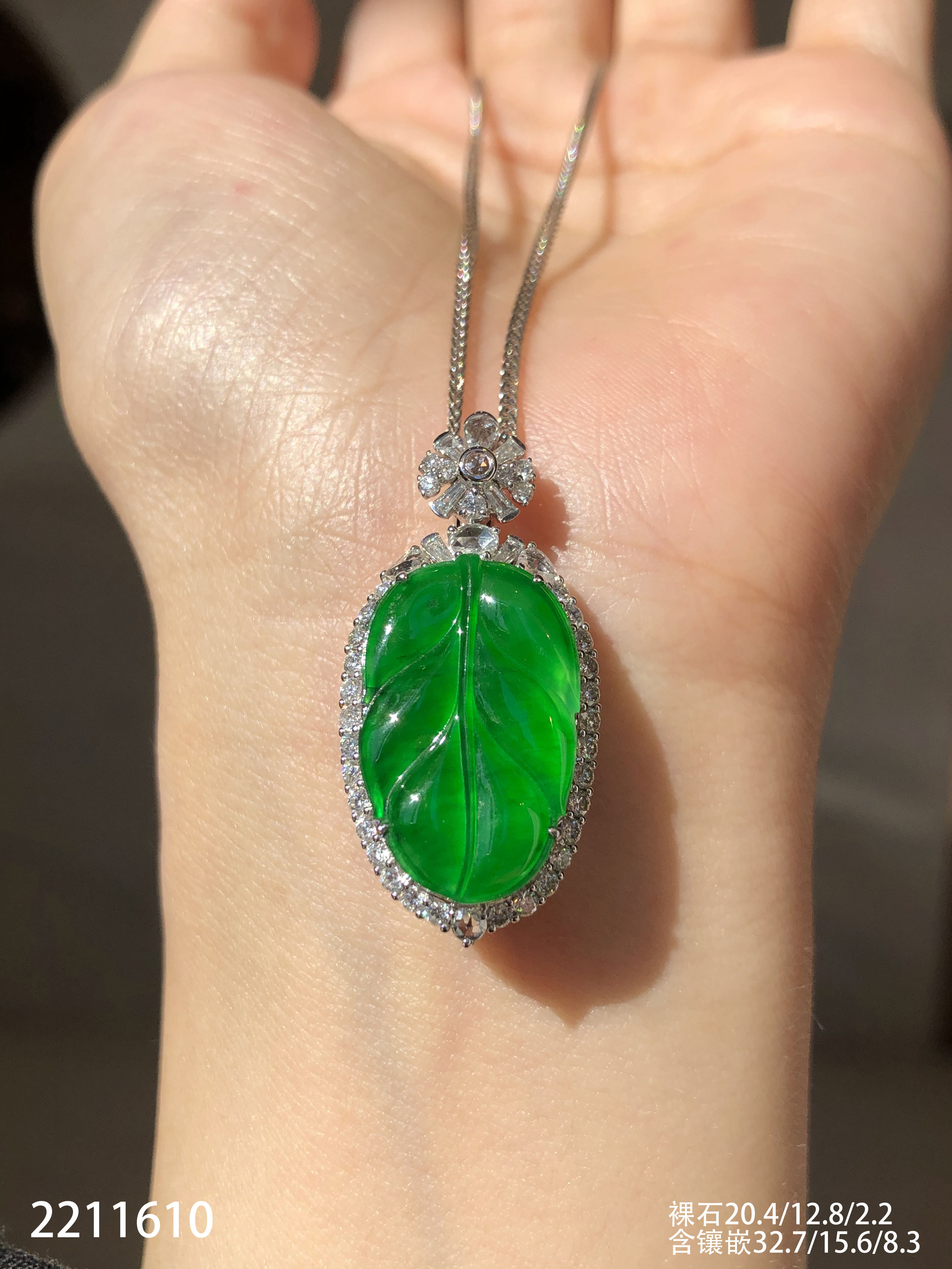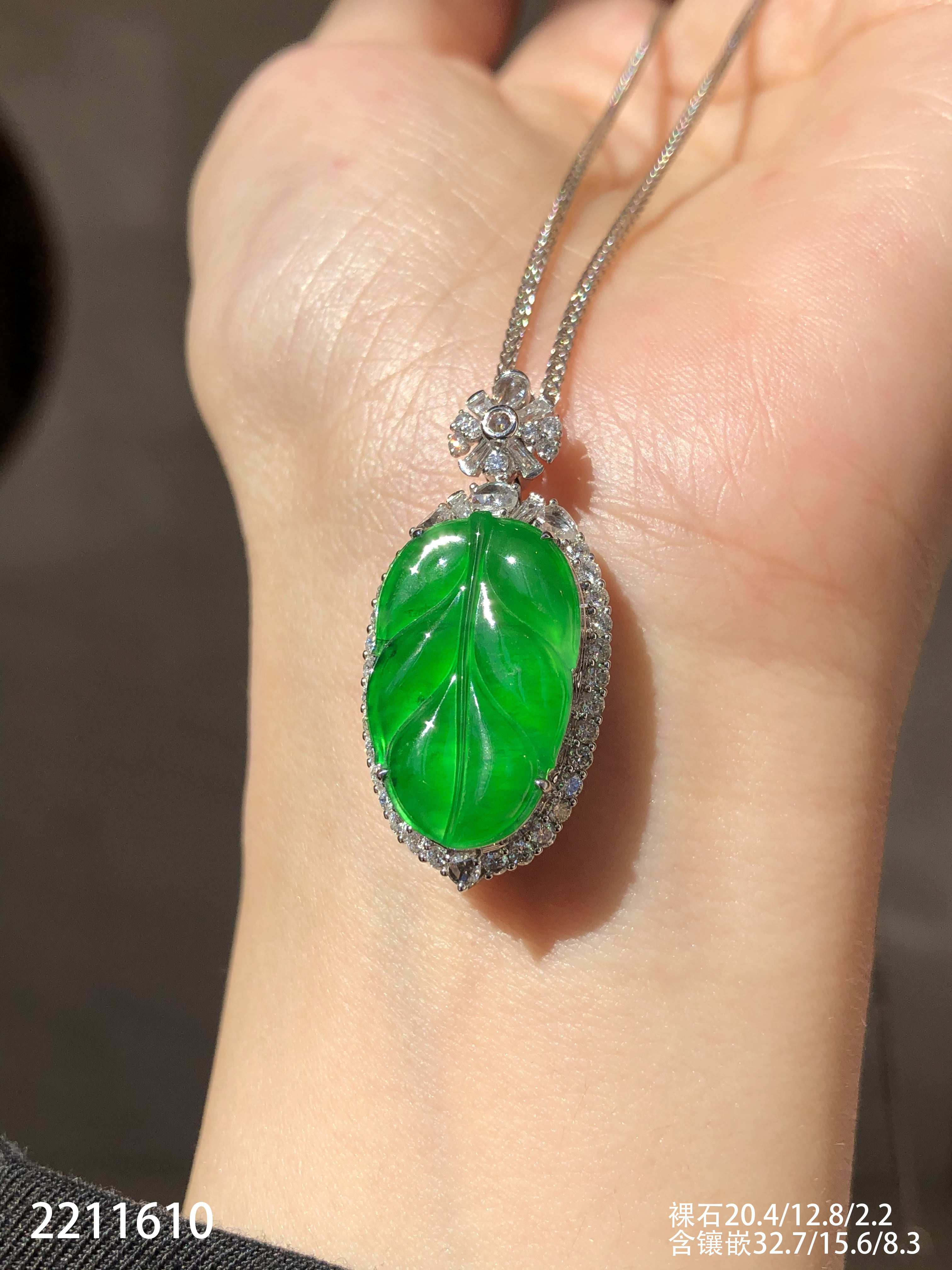 2211610,老坑高冰艳绿叶子吊坠。具体价格微信咨询