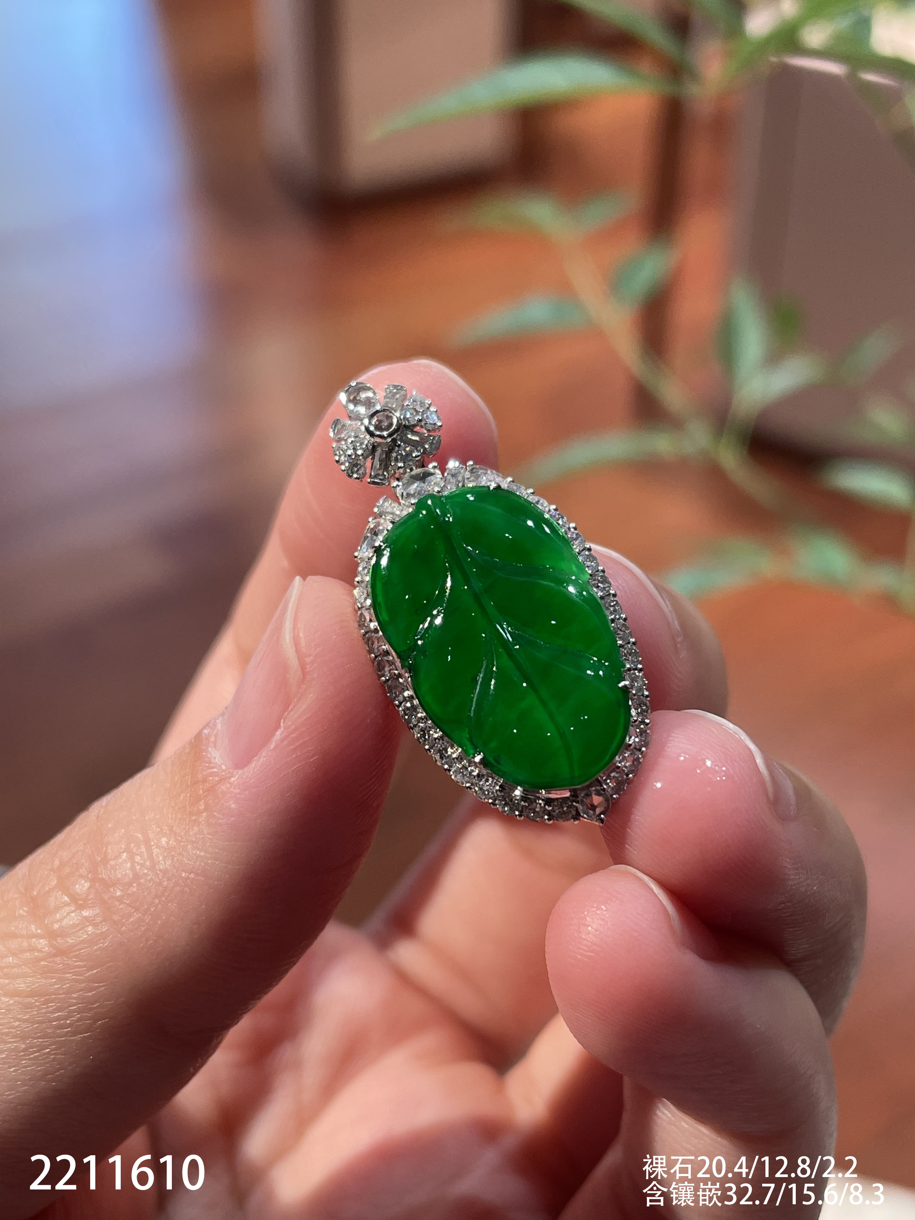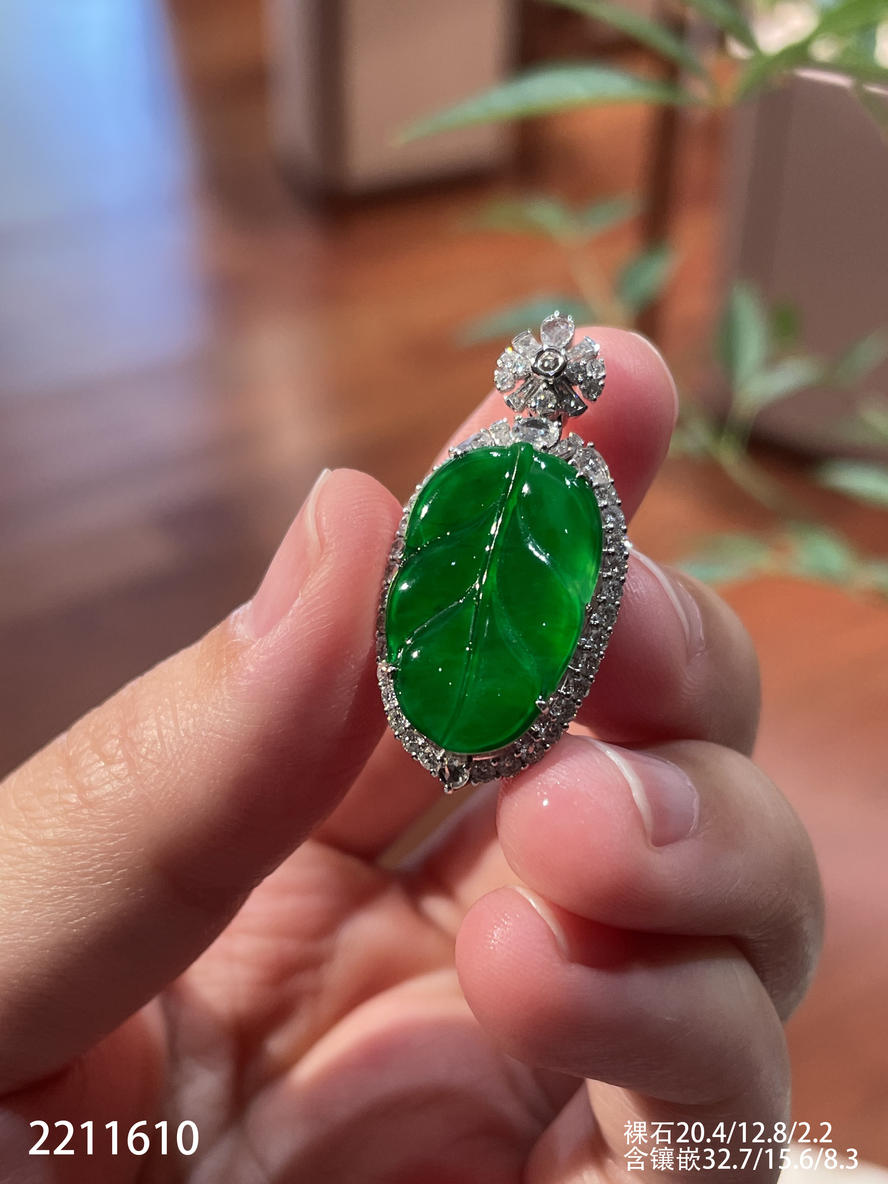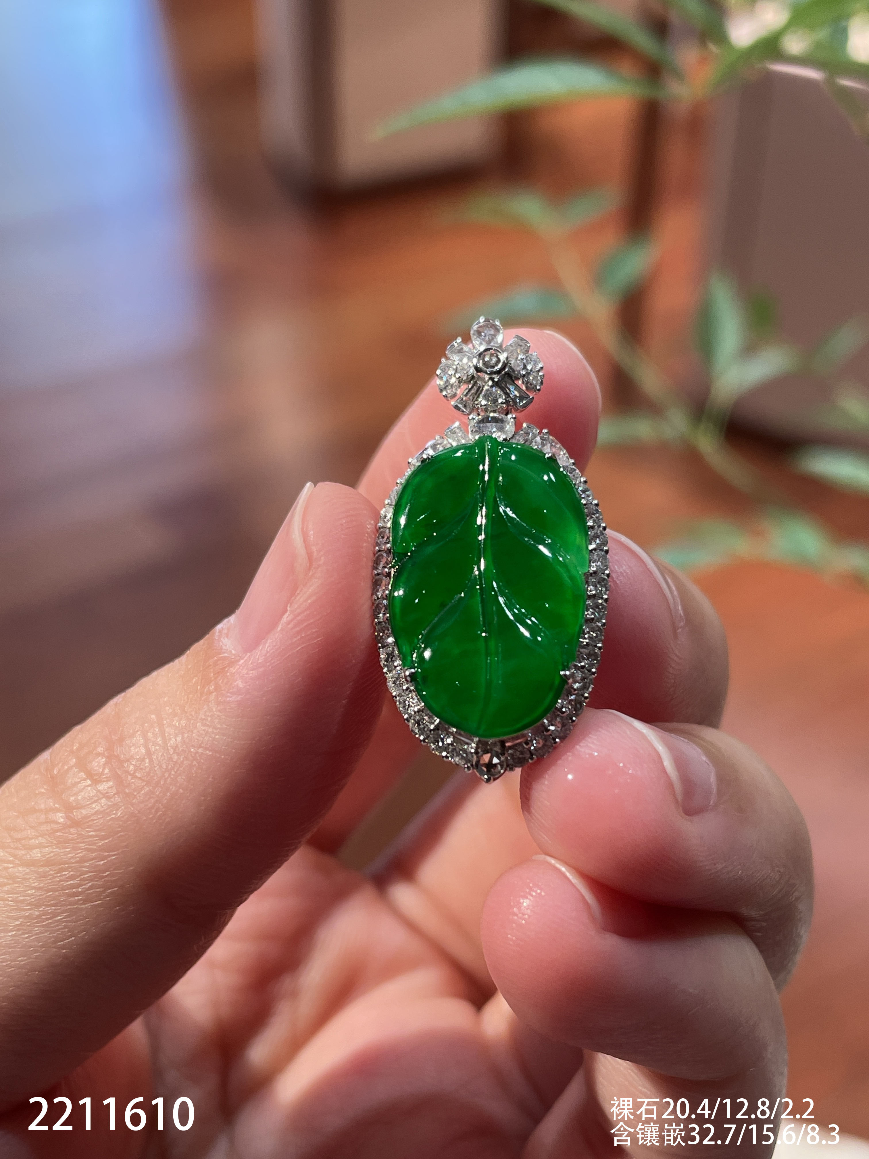2211610,老坑高冰艳绿叶子吊坠。具体价格微信咨询