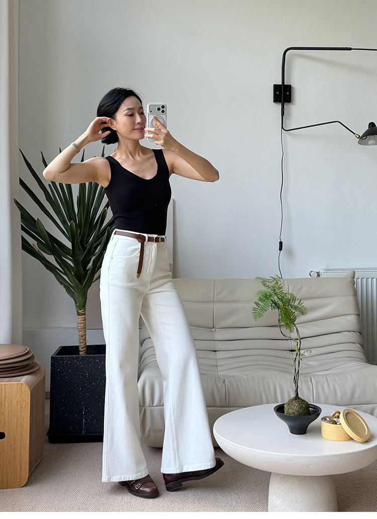 无扣腰带西装&微喇西装裤