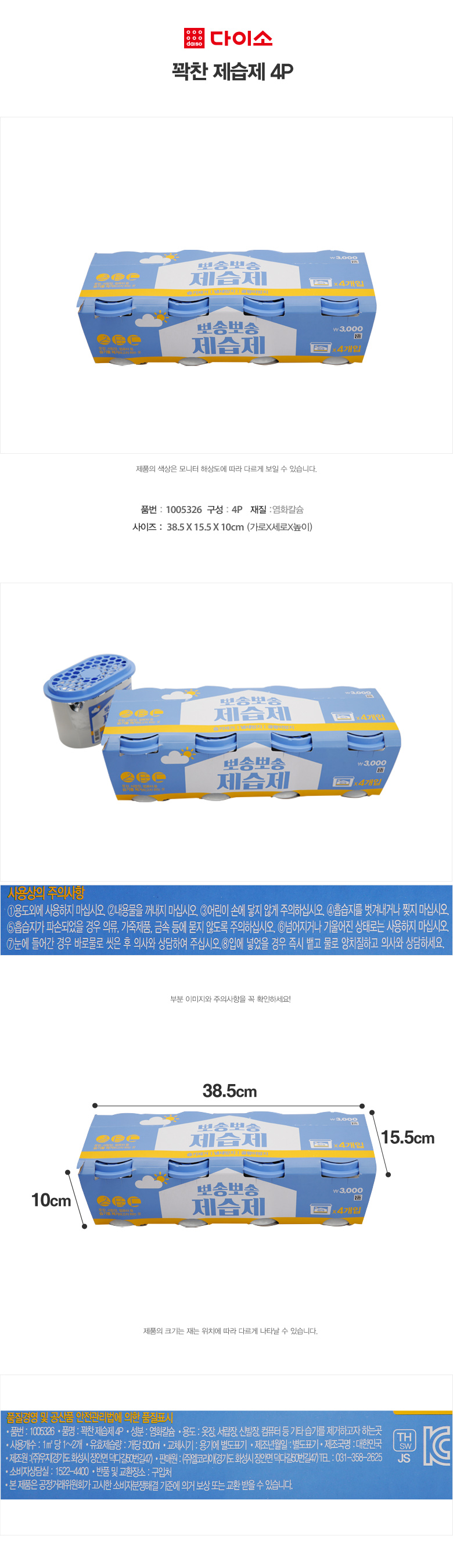 [Daiso] Fully Desiccant (4P/SET)-1005326 大创 房屋完全干燥剂JPY带授权招加盟代理