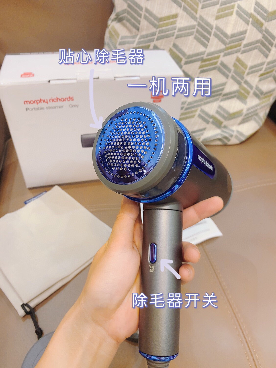 它还是熨烫机、除毛球器二合一的,冬天穿毛衣大衣就不用再另外买除毛球器了,一机多功能,感觉性价比很高!