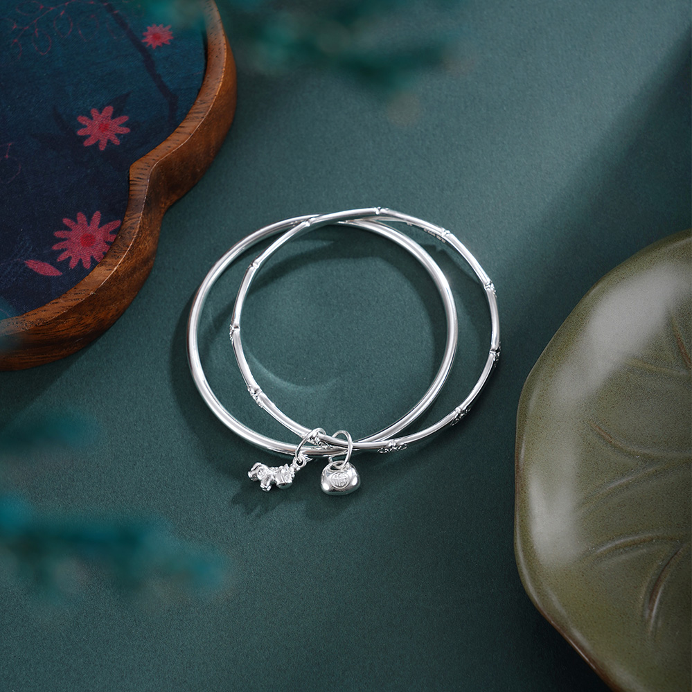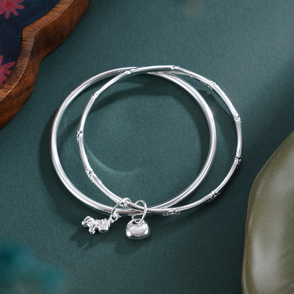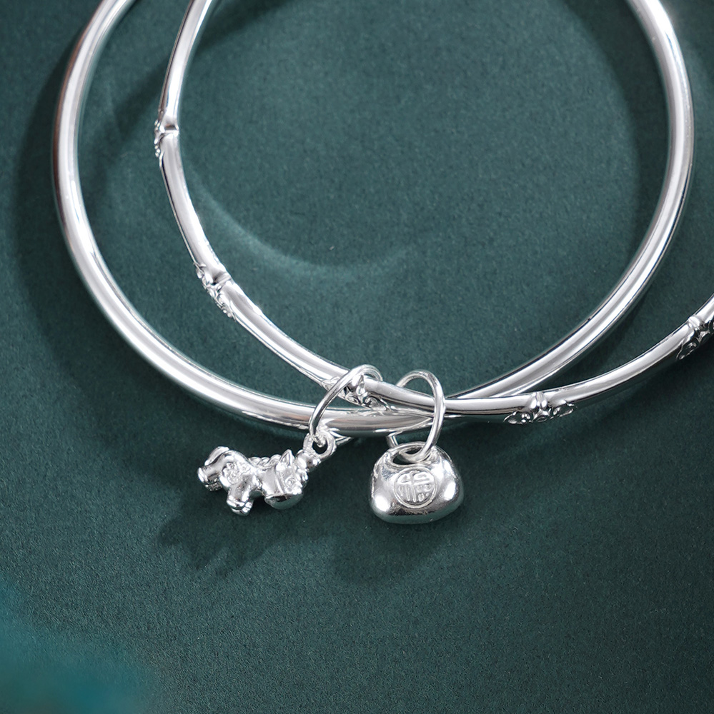 子佩集【福马聚宝】银S9999手镯【TC0522515】福袋小马竹节两个圈2601