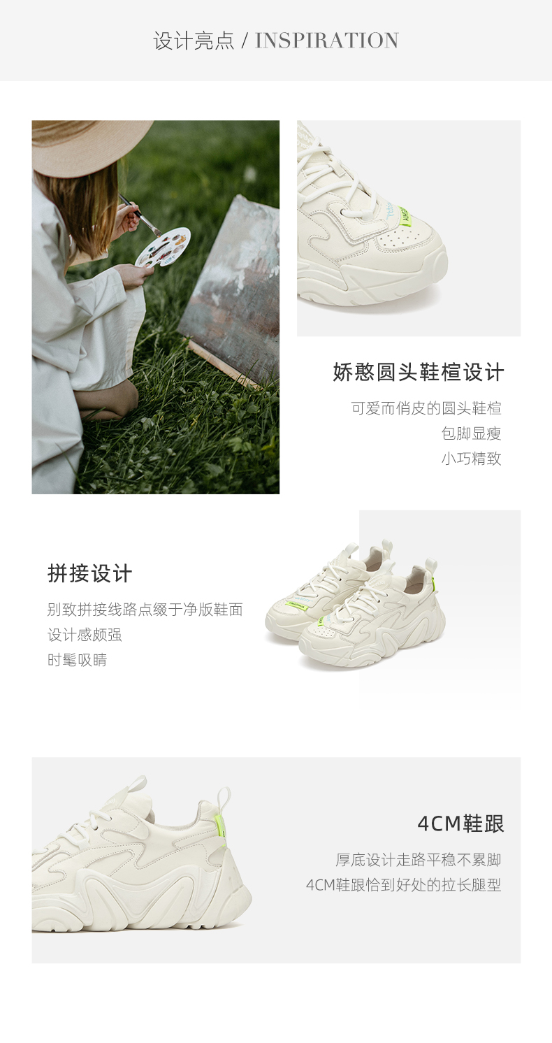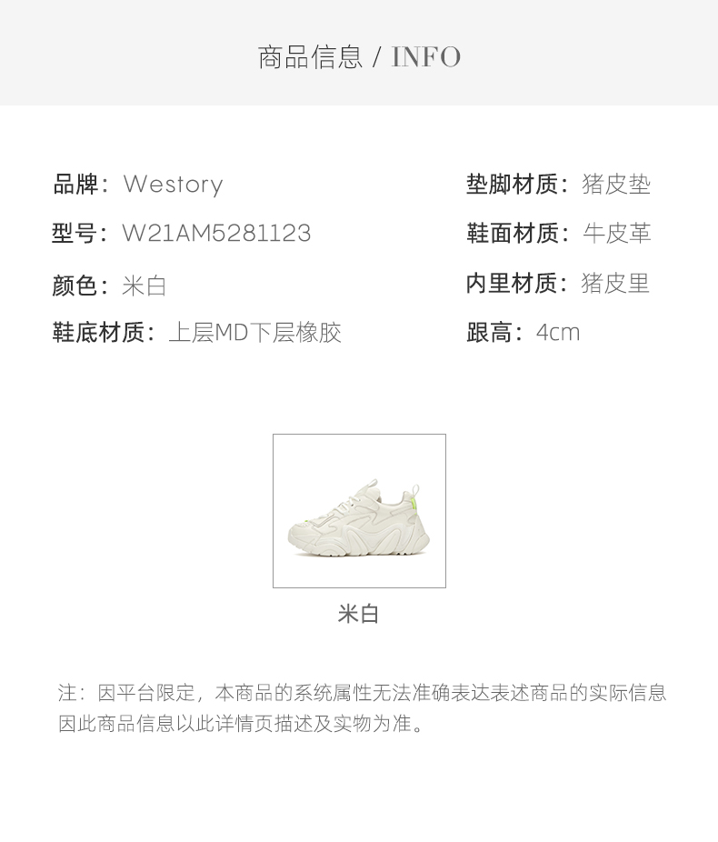 westory老爹鞋女2021春季新款小牛皮厚底增高运动鞋潮W21AM52811